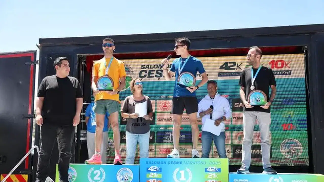Çeşme, Ilıca ve Alaçatı’nın doğal güzellikleri arasındaki Salomon Çeşme Maratonu’nda erkeklerde Ahmet Bayram, kadınlarda İranlı sporcu Aylar Ghazvini kürsünün zirvesinde yer aldı.