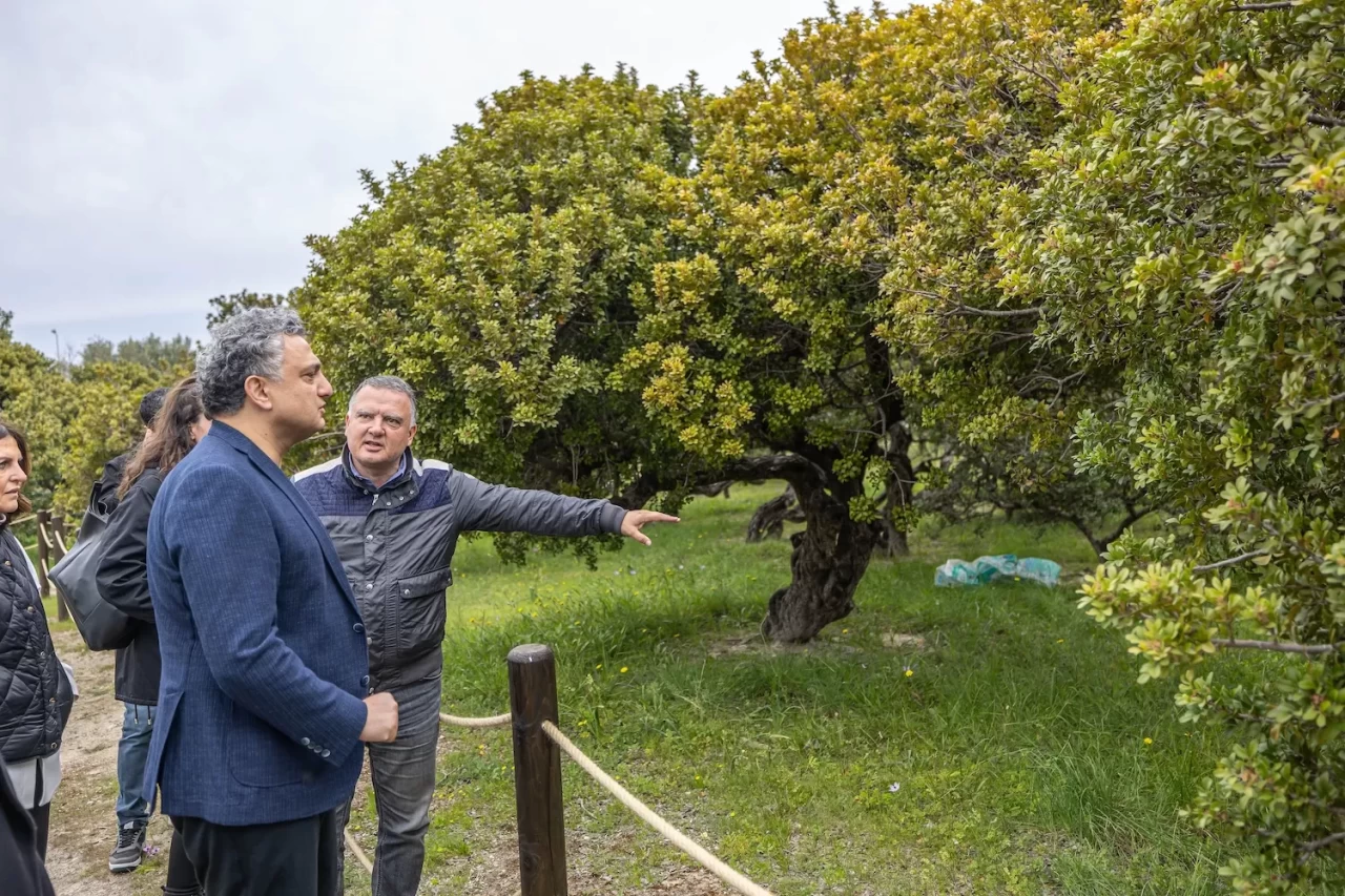 Ardından Proje Koordinatörü Hasan Ege Tütüncüoğlu ziyaretçilere yakın zamanda Çeşme Belediyesi tarafından hayata geçirilecek Park Sakız Alaçatı Sergi Alanı’nı gezdirdi ve sakız ağacının Çeşme’deki serüveniyle ilgili detaylı bilgiler verdi.