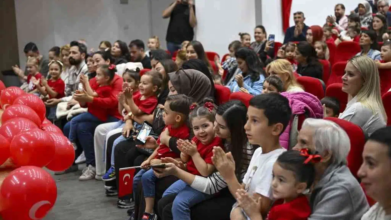 3-6 yaş arası çocuklar, ellerinde Türk Bayraklarıyla merkezlerde öğrendikleri şarkıları seslendirerek Cumhuriyete ve Büyük Önder Mustafa Kemal Atatürk’e olan sevgilerini dile getirdiler. Hafta boyunca her merkezde ayrı ayrı düzenlenen etkinliklere aileler de katılarak çocuklarının heyecanına ortak oldu. Minikler sahnede Cumhuriyet şarkılarını söylerken aileleri de coşkuyla onları destekledi.