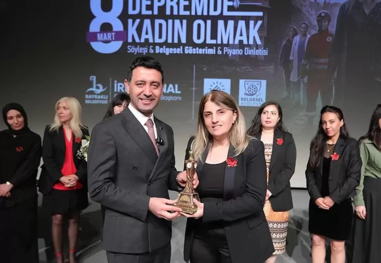 Bayraklı’nın kardeş şehri Adıyaman Belediyesi iş birliğiyle 8 Mart Dünya Emekçi Kadınlar Günü ve Deprem Haftası kapsamında düzenlediği “Depremde Kadın Olmak” temalı etkinlik, Tepekule Kongre Merkezi’nde gerçekleşti. Yoğun katılımın olduğu program, yüzlerce vatandaşın Akdeniz Salonu’na sığmaması üzerine büyük salona alındı. Etkinlikte, 30 Ekim 2020 İzmir Depremi ve 6 Şubat 2023 Kahramanmaraş merkezli depremlerinin ardından yaşanan zorluklar ve kadınların gösterdiği dayanışma örnekleri ele alındı. Etkinliğe Bayraklı Belediye Başkanı İrfan Önal, eşi Gökçe Pişkin Önal, Adıyaman Belediyesi 04.17 Belgesel Atölyesi ekibi, meclis üyeleri, muhtarlar, sivil toplum kuruluşlarının temsilcileri ve çok sayıda vatandaş katıldı.
