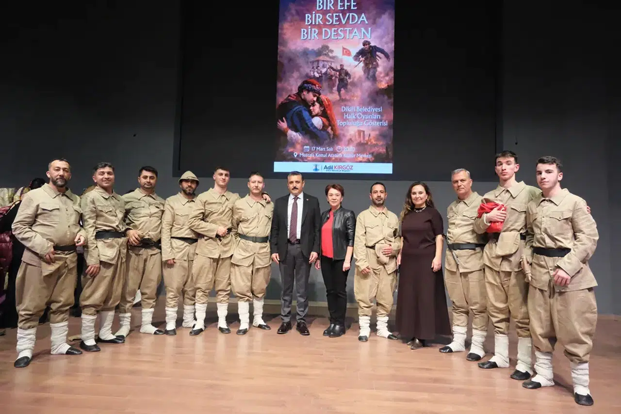 18 Mart Çanakkale Zaferi’nin 111. yıl dönümü Dikili Belediyesi Halk Oyunları Topluluğu’nun sahnelediği “Bir Efe, Bir Sevda, Bir Destan” başlıklı gösteri ile taçlandı.
