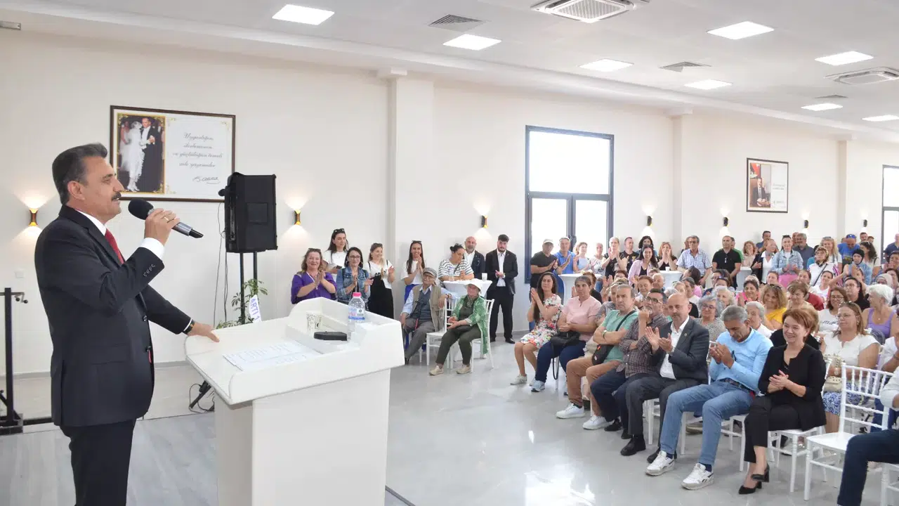Salimbey Mahallesi 108 Sokak'ta konumlanan 4270 metrekare alanda gelin odası, idare odası, bebek bakım odasının yer aldığı düğün salonunun açılış programına ilçe protokolü, muhtarlar, meslek odaları, sivil toplum kuruluşları, siyasi parti temsilcileri ve çok sayıda Dikilili vatandaş katıldı.