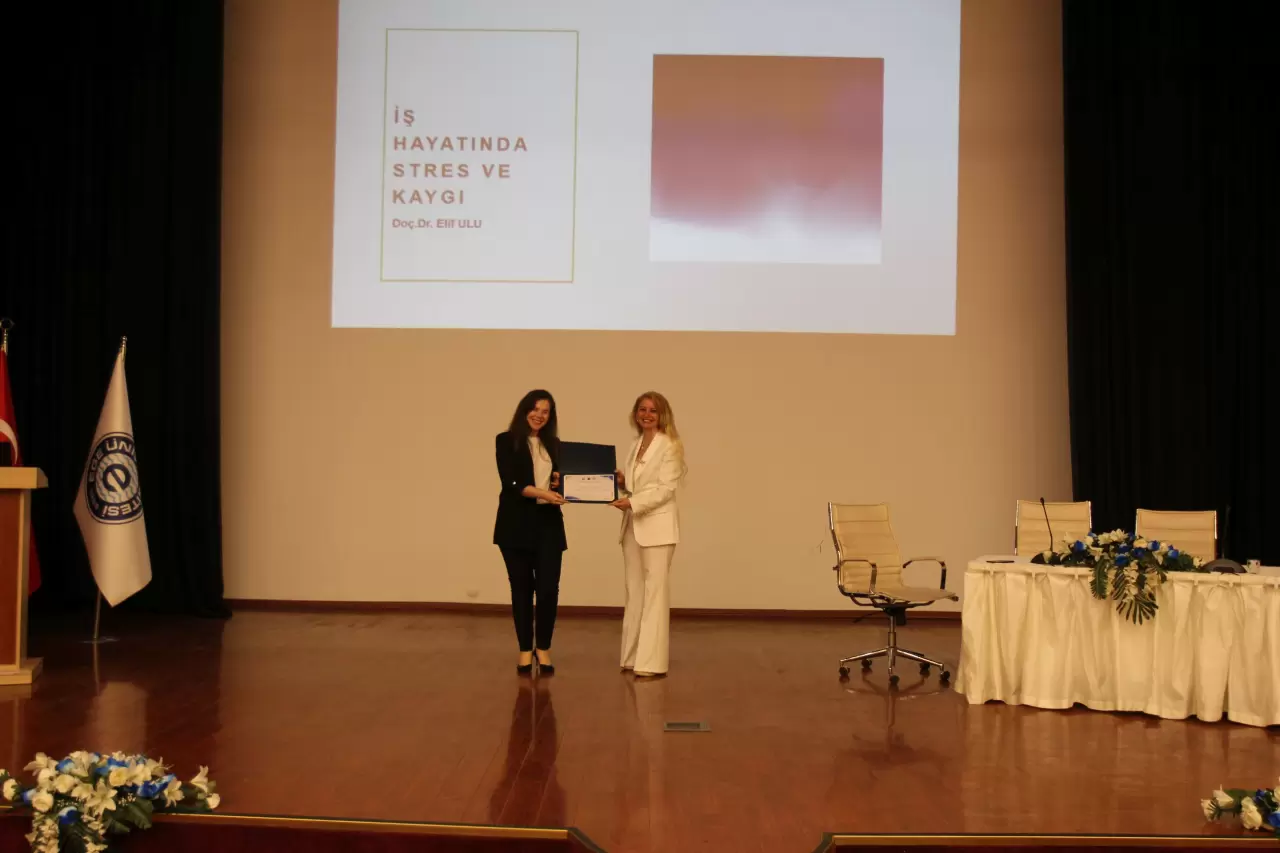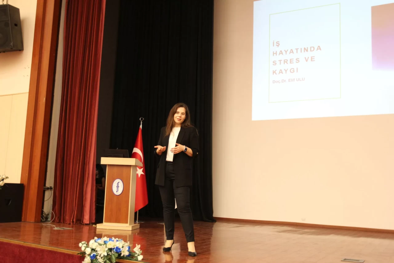 İş hayatında stresin kaynaklarını sıralayan Doç. Dr. Elif Ulu, “İş hayatındaki rol çatışması, iş yükü, zaman baskısı, ilişkisel problemler, kontrol eksikliği gibi nedenlerle ortaya çıkan stres; kişinin karar verme ve dikkat mekanizmasını bozar, öğrenmeyi ve hafızayı zayıflatır, bedende savaş ya da kaç mekanizması başlatır” diye konuştu