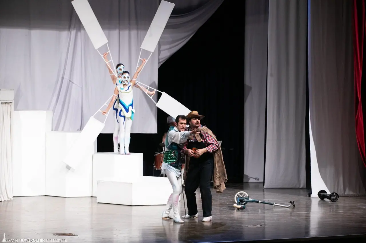 İzmir Büyükşehir Belediyesi Şehir Tiyatroları (İzBBŞT), sanatı şehrin her köşesine taşıma vizyonu kapsamında düzenlediği turne programına Torbalı ile devam etti. Cervantes’in ölümsüz eserinden uyarlanan “Don Kişot–Çağdaş Bir Masal” adlı çocuk oyunu, Torbalı Belediyesi İsmail Uygur Kültür Merkezi’nde sahnelenerek minik sanatseverlere unutulmaz bir gün yaşattı. Koltukları dolduran dolduran yüzlerce çocuk, Don Kişot ve sadık dostu Sanço’nun maceralarına ortak oldu. Hareketli sahneleri, renkli kostümleri ve müzikleriyle dikkat çeken oyun, çocuklardan tam not aldı.