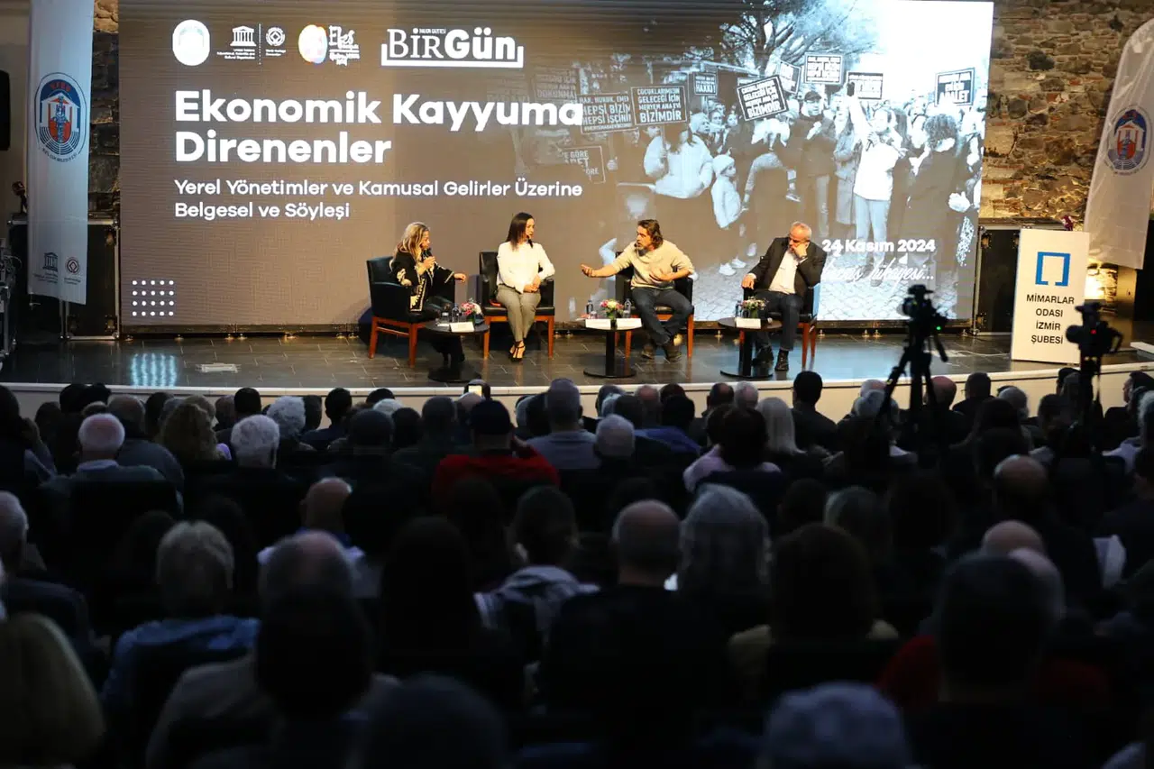 Gösterimin ardından, İzmir Gazeteciler Cemiyeti Başkanı Dilek Gappi moderatörlüğünde gerçekleşen söyleşiye Efes Selçuk Belediye Başkanı Filiz Ceritoğlu Sengel, araştırmacı-gazeteci Timur Soykan ve BirGün Gazetesi Genel Yayın Koordinatörü Yaşar Aydın katıldı.