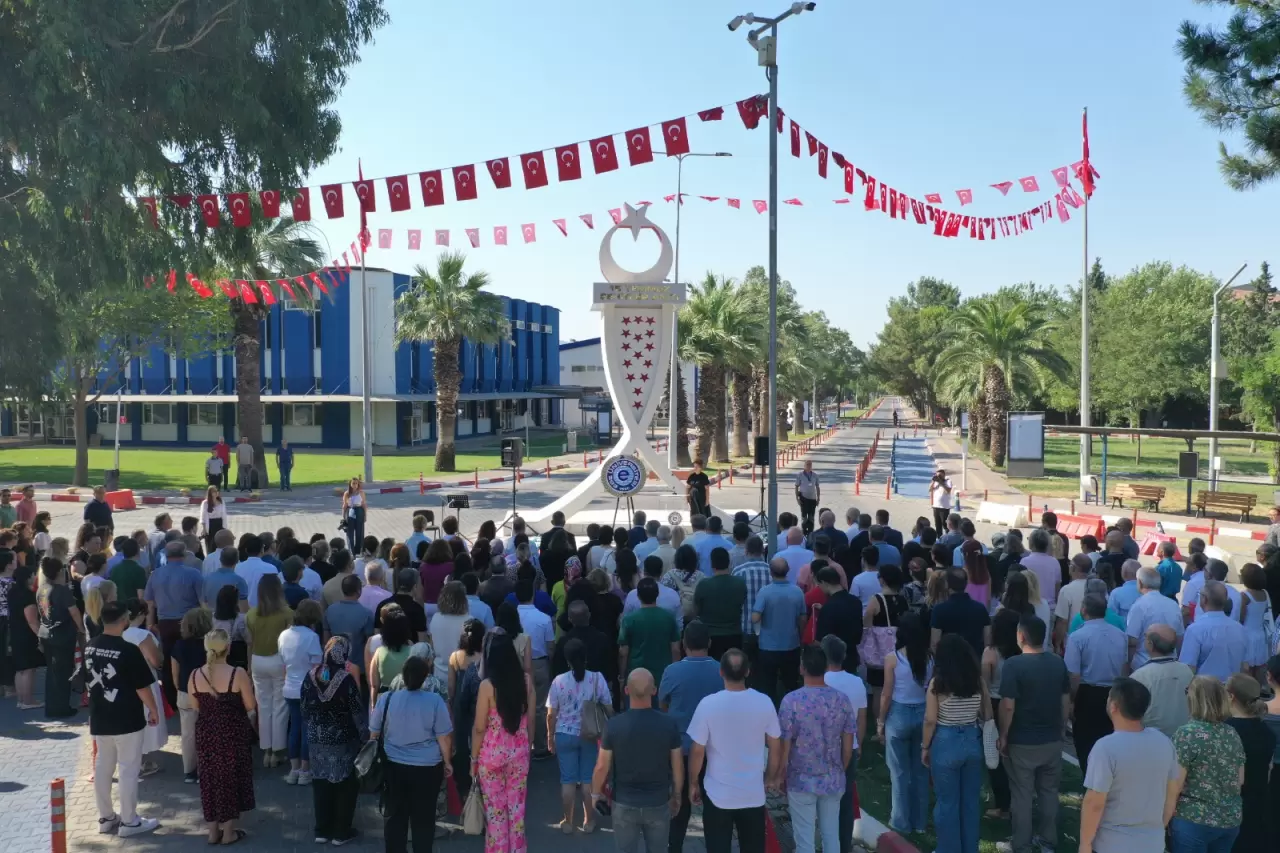 15 Temmuz Demokrasi ve Milli Birlik Günü kapsamında gerçekleştirilen etkinlikler, bu yıl Türkiye genelinde olduğu gibi Ege Üniversitesinde de “Zaferin Adı Türkiye” mottosuyla yapılıyor. Türk milletinin darbecilere karşı destan yazdığı anlamlı günün yıldönümünde Ege Üniversitesinde de düzenlenen bir dizi etkinlikle hem şehitler anıldı hem de milli ruh yaşatıldı. Ege Üniversitesi Rektörlüğü koordinasyonunda düzenlenen program, EÜ Kampüsünde yer alan 15 Temmuz Anıtına Çelenk Sunma Töreni ile başladı. Saygı duruşu ve İstiklal Marşı’nın okunmasının ardından şehitler için Birgivi İlahiyat Fakültesi Öğr. Gör. Osman Bostancı tarafından Kuran-ı Kerim tilaveti icra edildi.