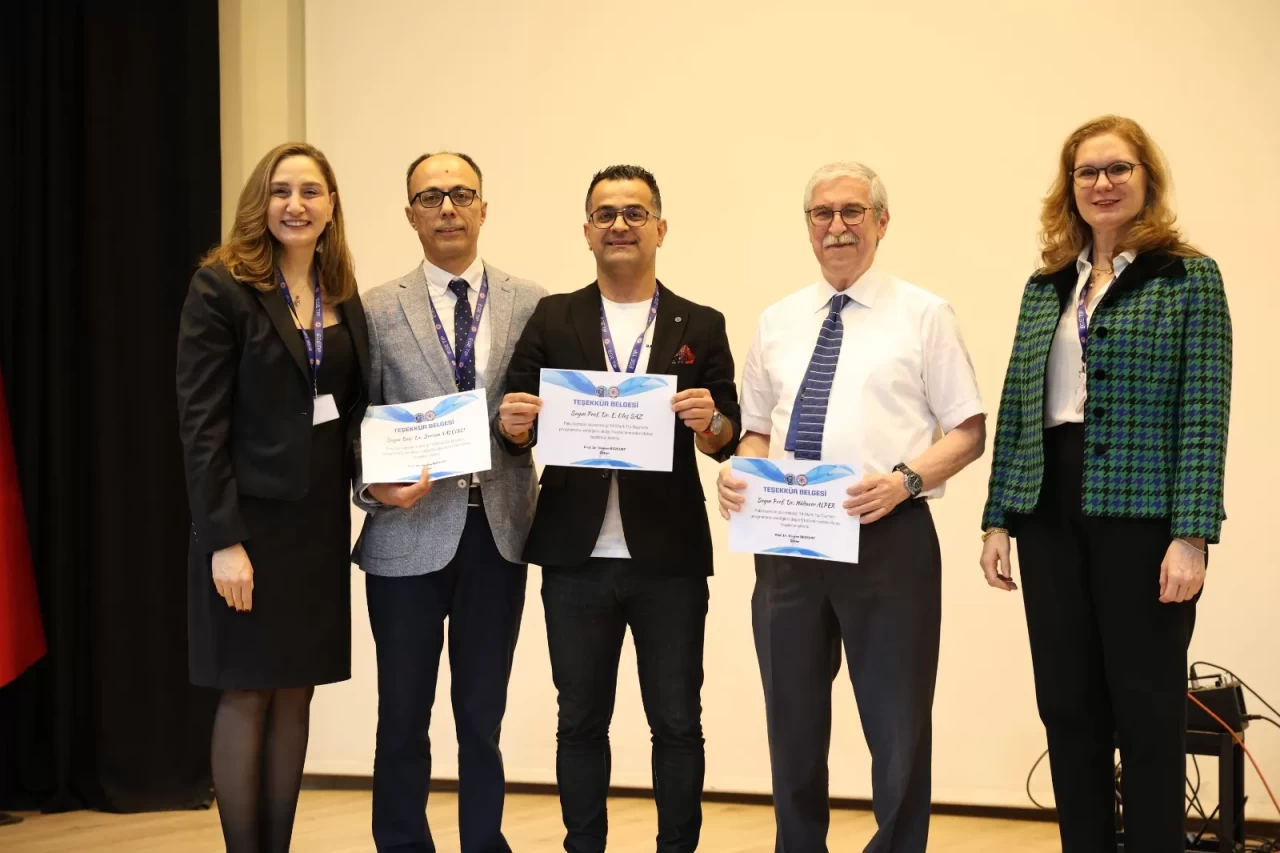 EÜ Rektör Yardımcısı ve Tıp Fakültesi Dekanı Prof. Dr. Devrim Bozkurt, “Tıp Bayramı, doktorluk mesleğinin aslında bir yaşam biçimi olduğunu bizlere hatırlatıyor. Bu meslek, adanmış bir hayatı, onurlu ve saygın bir duruşu ifade etmektedir. Bizler de mesleğimizin gerektirdiği saygınlığı, özsaygımızla pekiştirerek, sağlık alanında önemli katkılar sunmaya devam ediyoruz. Ege Üniversitesi olarak; tam akredite, öğrenci odaklı, sağlık temalı bir araştırma üniversitesi olmanın gururunu yaşıyoruz. Bu yıl, fakültemizin gösterdiği üstün Ar-Ge performansı nedeniyle tıp ailemize ve fakültemize teşekkür etmek istiyorum. Ayrıca, Üniversitemiz Rektörü Prof. Dr. Necdet Budak’ın selamlarını da sizlere iletmek isterim. Şahsım ve ekibim adına hepinizi saygıyla selamlıyor, Türk tıp camiasının Tıp Bayramı’nı en içten dileklerimle kutluyorum” diye konuştu.