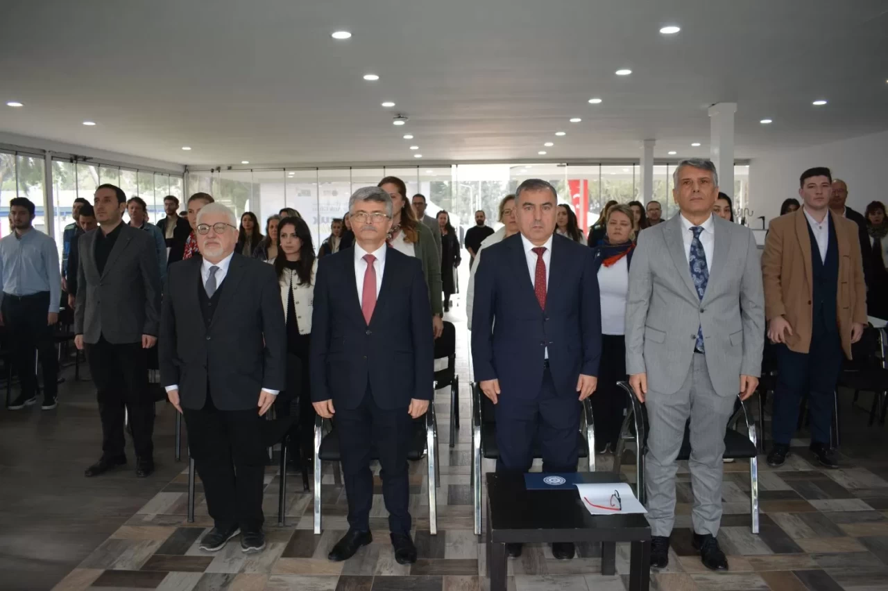 Ege Üniversitesi Öğrenci Dekanlığında gerçekleştirilen etkinliğe; Bornova Kaymakamı Muzaffer Şahiner, Ege Üniversitesi Rektör Yardımcısı Prof. Dr. Mehmet Ersan,