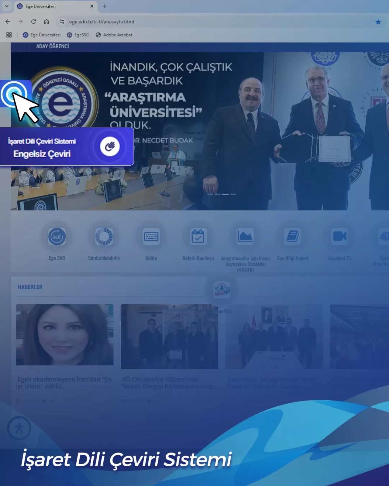 “Rektörümüz Prof. Dr. Necdet Budak’ın göreve geldiği ilk günden itibaren son sekiz yılda kampüsümüzde engellilik alanında yapılan çalışmalar her geçen gün hızla artmaktadır. Her yıl düzenlenen ‘Rektör ile Akşam Çayı’ etkinliğinde engelli öğrencilerimiz ve aileleri rektörümüz ve üst yönetim ile bir araya gelmektedir. Engelsiz Ege Üniversite Sempozyumunu geleneksel olarak düzenlemekteyiz. Farkındalık çalışmaları kapsamında televizyon ve radyo programları yapmaktayız. 2025 yılı itibari ile üniversitemizin tüm web sayfalarında ‘Engelsiz Çeviri Asistanı’ ve ‘Web Erişebilirlik Aracı’ uygulamalara hayata geçirdik. Koordinatörlüğümüz başta olmak üzere tüm akademik birimlerimiz de engellilik alanındaki farkındalığı daha çok geliştirmek için çalışmaktayız. Üniversitemizde Engelsiz Ege Koordinatörlüğü olarak mekan, eğitim ve sosyo-kültürel faaliyetlere erişilebilirliğin yalnızca bir standart değil aynı zamanda akademik eşitlik ve toplumsal katılımın temel koşulu olduğunun bilinciyle çalışmalarımızı sürdürülebilir şekilde geliştirmeye devam ediyoruz."