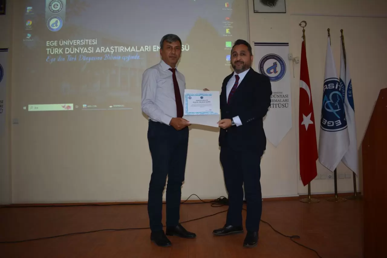 Konuşmanın ardından dinleyicilerden gelen sorular cevaplandırıldı ve İzmir Azerbaycan Derneği Yönetim Kurulu Başkanı Perviz Altay tarafından Prof. Dr. Şahin’e “Teşekkür Belgesi” takdim edildi.