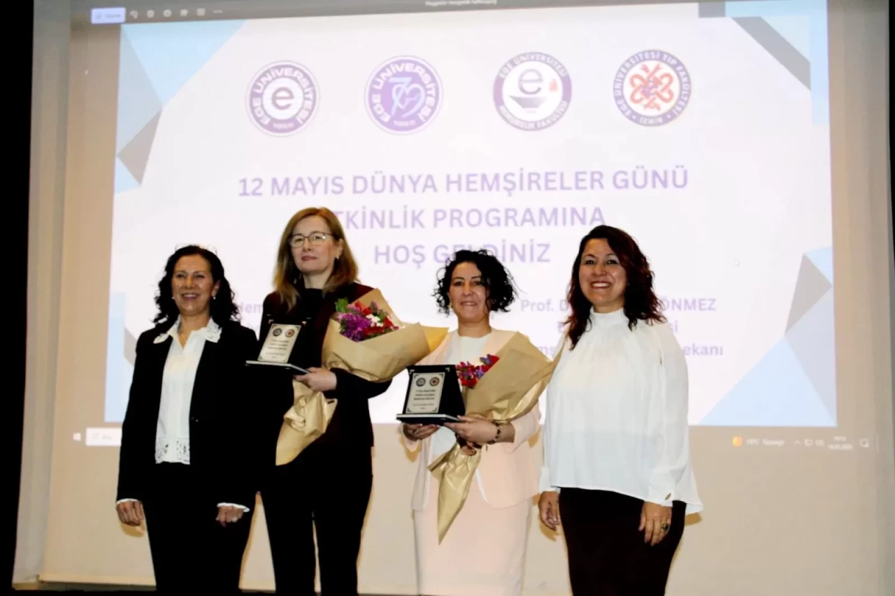 Ege Üniversitesi Tıp Fakültesi Hastanesi’nden 2024-2025 yılları arasında emekli olan hemşire ve sağlık teknikerlerine Ege Üniversitesi Tıp Fakültesi Hastanesi adına plaket verildi, çalıştıkları anabilim dalları emekli hemşire ve emekli teknisyenleri tebrik etti. Ege Üniversitesi Hemşirelik Fakültesi Dekanı Prof. Dr. Ayşegül Dönmez’e 2025 yılında İzmir Valisi Dr. Süleyman Elban tarafından “İzmir’de yaşayan başarılı kadınlar” ödülü verilmesi nedeniyle ile Uzm. Hem. Birgül Nurülke tarafından kutlama hediyesi takdim edilmesi ardından etkinlikler sona erdi.