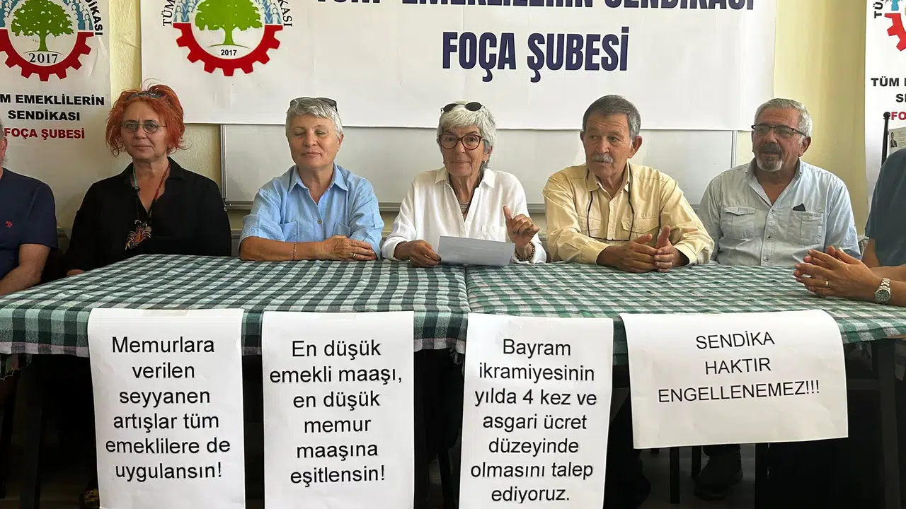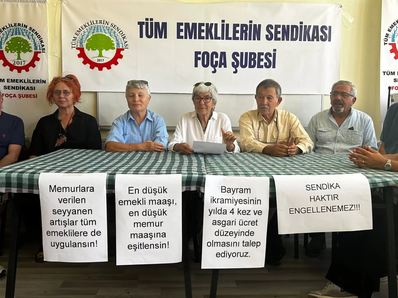 Tüm Emeklilerin Sendikası Foça Şubesi’nde düzenlenen basın açıklamasını Şube Başkanı Dilhan Akçay okudu. Emeklilerin yoksulluk sınırının altında yaşamaya mahkum edildiğini belirten Akçay TÜİK’in gerçeği yansıtmayan verileriyle yoksulluk ve açlığın gizlendiğini savundu. Dilhan Akçay;