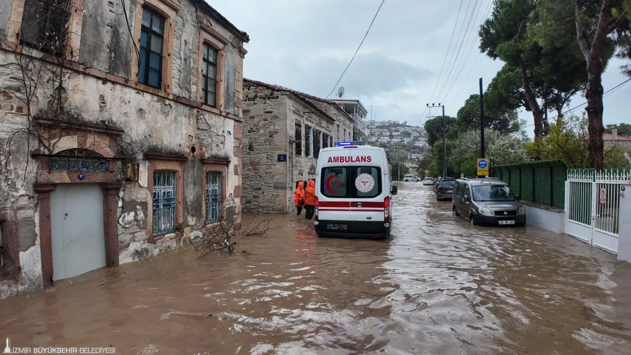 İzmir’in Foça ilçesinde meydana gelen aşırı yağış nedeniyle yaşam olumsuz etkilendi. İlçede metrekareye kısa süre içinde yaklaşık 154.4 kg yağış düştü. Deniz seviyesinin de yükselmesiyle birlikte su baskınları yaşandı. İZSU Genel Müdürlüğü ve itfaiye ekipleri ihbarlara müdahale etmek için bölgeye sevk edilen takviye ekiplerle birlikte seferber oldu. İZSU Genel Müdürü Gürkan Erdoğan ve İtfaiye Dairesi Başkanı Yaşar Korkmaz bölgeye giderek Foça Belediye Başkanı Saniye Bora Fıçı ile birlikte ekiplerin çalışmalarını yönlendirdi. İzmir Büyükşehir Belediyesi 192 araç ve 350 personelle bölgede yaşamı normale döndürmek için kesintisiz çalışıyor. Ekipler su tahliye çalışmalarının yanı sıra bölgedeki vatandaşların da yardımına koşuyor. Başta İZSU ve itfaiye ekiplerinin yürüttüğü çalışmalara İzmir Büyükşehir Belediyesi’ne bağlı İklim Değişikliği ve Sıfır Atık Dairesi, Sosyal Hizmetler Dairesi, Muhtarlık İşleri Dairesi, Fen İşleri ve Veteriner İşleri Dairesi Başkanlığı destek veriyor.