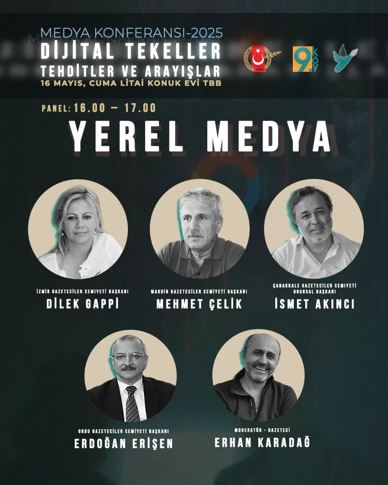 Gazeteci Erhan Karadağ’ın moderasyonunda gerçekleşen konferansta; İzmir Gazeteciler Cemiyeti Başkanı Dilek Gappi, Mardin Gazeteciler Cemiyeti Başkanı Mehmet Çelik, Çanakkale Gazeteciler Cemiyeti Onursal Başkanı İsmet Akıncı ve Ordu Gazeteciler Cemiyeti Başkanı Erdoğan Erişen konuşmacı olarak yer alacak.