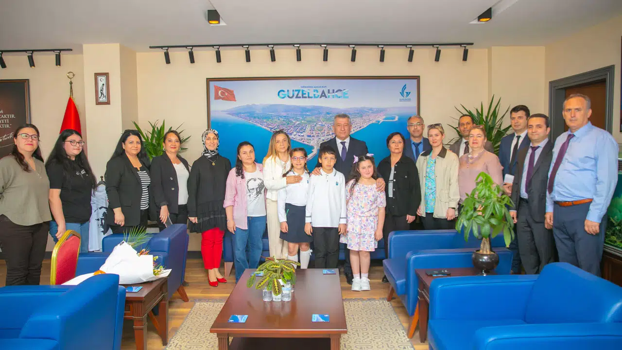 23 Nisan Ulusal Egemenlik ve Çocuk Bayramı dolayısıyla Güzelbahçe Belediye Başkanı Mustafa Günay, geleneksel olarak gerçekleştirilen koltuk devri kapsamında bu yıl farklı olarak başkanlık makamını bir günlüğüne üç öğrenciye bıraktı. Yelki Hamdı Dalan Okulu 4’üncü sınıf öğrencisi Ela Karataş, Bilgince Koleji 5’inci sınıf öğrencileri Begüm Öktem ve Alptekin Savaşçı oturdu. Başkan Günay, “Ulu Önder Mustafa Kemal Atatürk’ün çocuklara armağan ettiği bu özel günde, geleceğimizin teminatı olan çocuklarımızın hayal gücü ve vizyonuyla belediye yönetimine renk katacağına inancımız büyük.. Minik başkanlar belediyenin çalışmalarına dair fikirlerini paylaşacak, hayalindeki Güzelbahçe'yi anlatacak. 23 Nisan sadece bir bayram değil; çocuklarımızın söz sahibi olduğu, kendilerini ifade edebildikleri ve geleceğe umutla bakabildikleri çok kıymetli bir gündür. Onların gözünden kentimizi görmek bizler için büyük bir ilham kaynağı. Gelecekte onlar bu şehirleri yönetecekler. Bizlerde onlara güzel bir gelecek bırakmak için var gücümüzle çalışacağız. Güzelbahçe Belediyesi olarak, tüm çocuklarımızın 23 Nisan Ulusal Egemenlik ve Çocuk Bayramı’nı kutluyor; barış, kardeşlik ve sevgi dolu bir dünya diliyoruz. Vermiş olduğunuz talimatları müdürlerimiz hızlı bir şekilde ve en kısa zamanda tüm eksiklerin giderilmesi için titizlikle çalışmalara başlayacaklar” dedi.