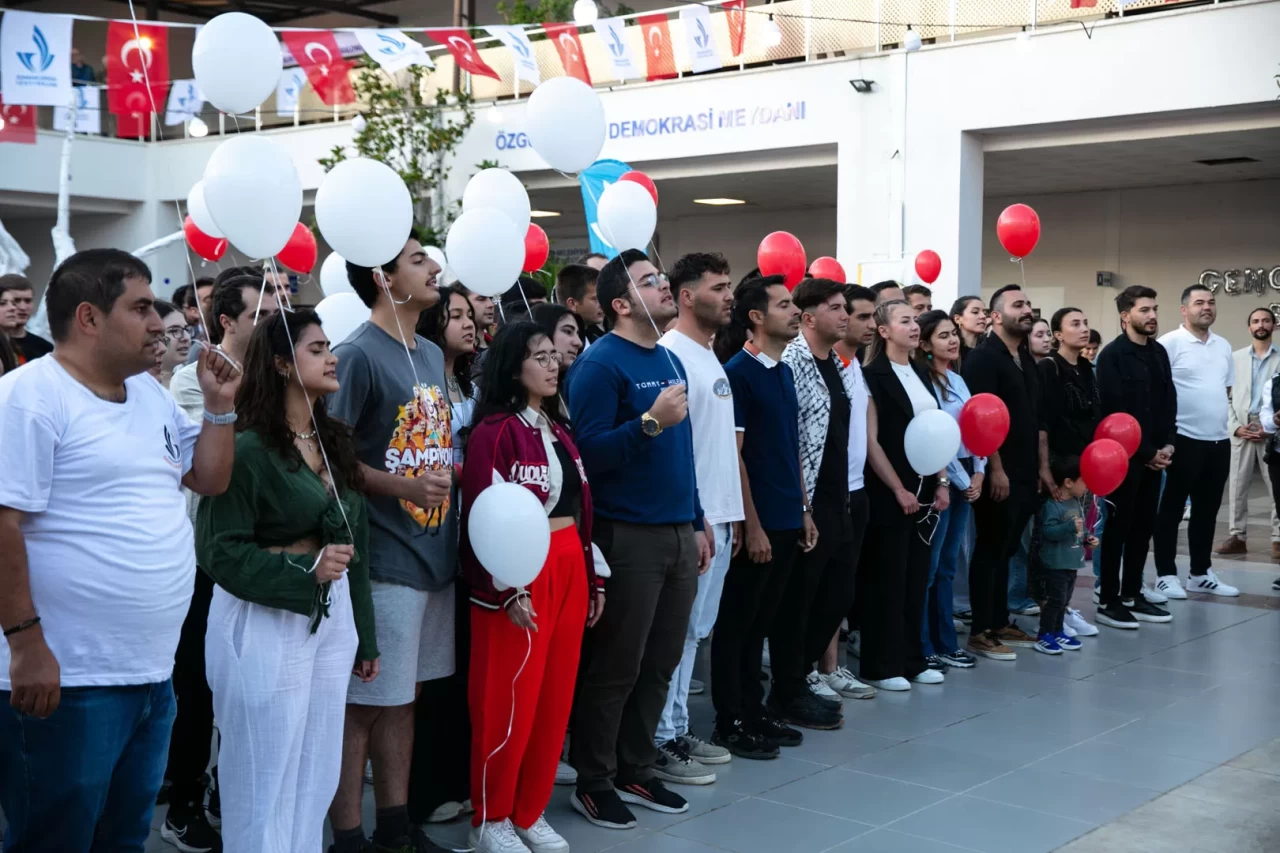 Program saygı duruşu ve istiklal marşıyla başladı. Konuşmaların ardından gençler, alanda toplanarak Atatürk’ün Gençliğe Hitabesini hep bir ağızdan okudu. Ellerindeki balonları gökyüzüne bıraktı.