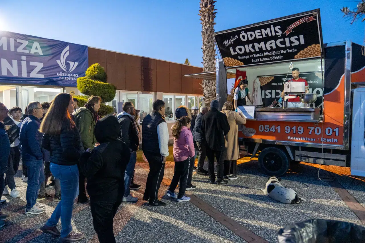 Güzelbahçe Belediyesi Dayanışma Mutfağı’nda özenle hazırlanan iftar yemekleri, Gençlik Kulübü ve İletişim Merkezi ekipleri tarafından iftardan hemen önce servis edilerek katılımcılara ikram edildi. İftardan sonra şehitlerin ruhu adına döktürülen lokma vatandaşlara ikram edildi.