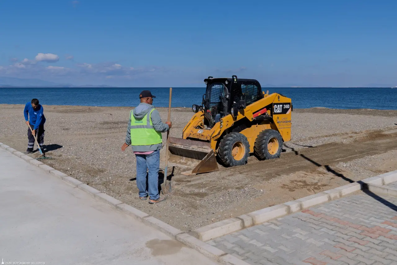 İzmir Büyükşehir Belediyesi Fen İşleri Dairesi Başkanlığı Şantiye Şefi Volkan Keskin, 2 bin metrekarelik sosyal tesiste bin 200 metrekarelik sert zemin çalışmalarını tamamladıklarını bildirdi. Keskin, “Tuvalet, duş, kafeterya ve oturma alanlarında imalatlar devam edecek. Kıyıda düzenleme çalışmalarını yaptık. Plajı İzmir halkının denize girebileceği hale getirdik. Burada daha önce atıl bir işletme vardı. Yıkımını yaptık. Halkımızın burada çayını, kahvesini içip denize girebileceği güzel bir alanı kentimize kazandırıyoruz” dedi. Tesisteki sosyal hizmet alanlarının altyapı çalışmalarının devam ettiğini belirten Yapı İşleri Dairesi Başkanlığı Elektrik Elektronik Mühendisi Yılmaz Güzel ise “Alanın aydınlatması ve elektrik tesisatı ile ilgili çalışmalar yürütüyoruz. 6 aydınlatma direğiyle tesisin aydınlatmasını sağlıyoruz” diye konuştu.