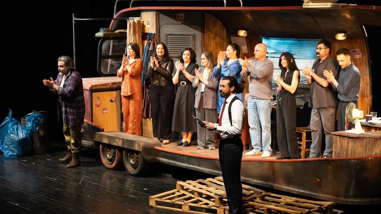 Sam Bobrick’in kaleme aldığı, Burak Şentürk’ün yönettiği ‘Halktan Biri’, yıllar öncesinin Amerika’sında, halkın manipüle edilmiş tercihleriyle iktidara gelen despotik bir lider ile ona tek başına karşı çıkan sıradan bir vatandaşın, Travis Pine’ın hikayesini sahneye taşıyor. Oyunda Travis Pine karakterine Ayhan Anıl, Tom Walker karakterine ise Murat Sönmez hayat veriyor. Görsel dünyasıyla da dikkat çeken oyunda Anıl Işık’ın dekor tasarımı ve Deniz Bilgili’nin kostümleri sahneye güçlü bir atmosfer kazandırırken, Uğurcan Uslu’nun ışık tasarımı ve Ruhat Kılıç Hosseini’nin koreografisi anlatımı destekleyen önemli unsurlar arasında yer aldı. Oyunun dramaturjisini ise Duygu Kankaytsın Çelenk yaptı.