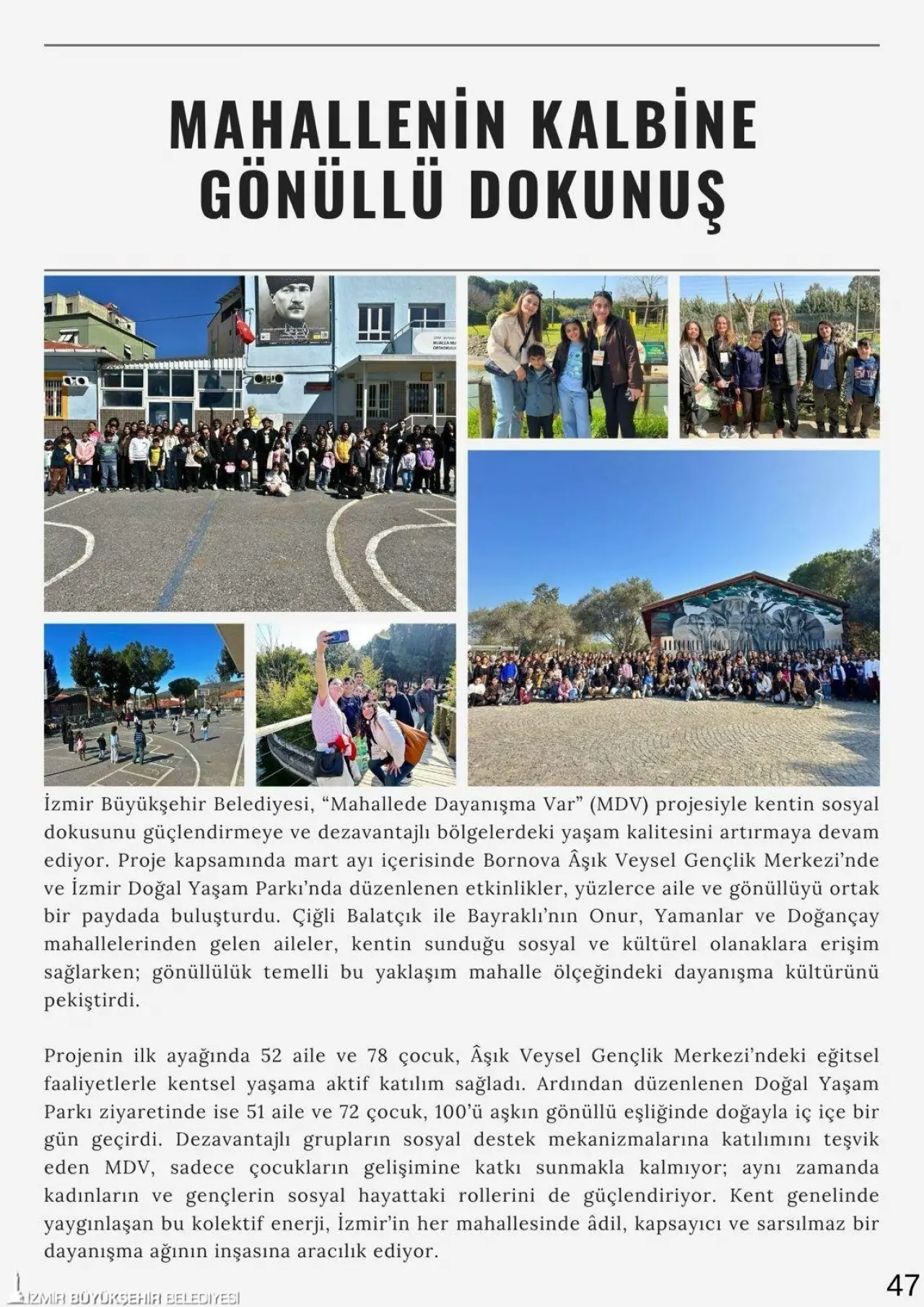 Dijital ortamda yayımlanan “Hep Birlikte İzmir” bülteni, İzmir Büyükşehir Belediyesi’nin sosyal politikalar alanındaki çalışmalarını tek çatı altında toplarken yurttaşların bu hizmetlere erişimini ve katılımını da teşvik etmeyi amaçlıyor. Mart sayısına çevrim içi olarak şu bağlantı üzerinden ücretsiz erişilebiliyor.