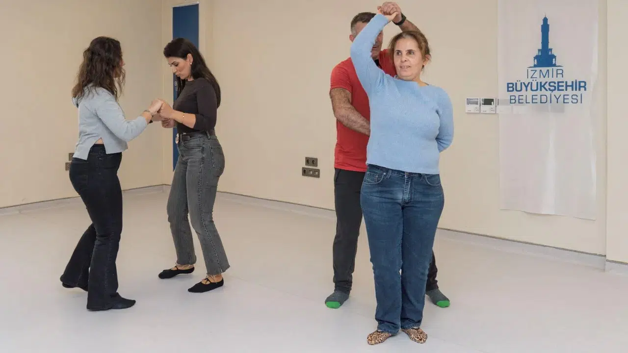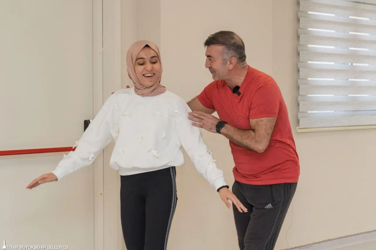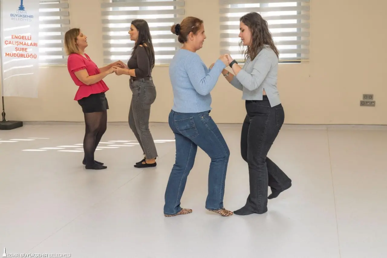 İzmir’de yaşayan görme engelli yurttaşlar, İzmir Büyükşehir Belediyesi Engelli Çalışmaları Şube Müdürlüğü ve Herkes İçin Turizm Derneği iş birliğiyle dans etmenin özgürlüğünü yaşadı. İzmir Büyükşehir Belediyesi’nin Yurdoğlu Engelli Çalışmaları Merkezi’nde düzenlenen “Dansla Terapi Atölyeleri”, Almanya merkezli Tanz der Kulturen Berlin e.V.’de görev yapan PDR ve Dans Terapisti Mehmet Ballıkaya tarafından yürütülüyor. Toplam 16 katılımcıyla sınırlı atölye, “Ritmi Hisset, Bedeninle Özgürleş” temasıyla katılımcıların bedensel farkındalıklarını güçlendirmeyi, duygularını ifade etmelerini ve sosyal katılımlarını artırmayı hedefliyor. Dans ve yaratıcı drama yöntemlerinin bir arada kullanıldığı çalışmalar, görme engelli bireylerin sanat aracılığıyla kendini ifade etme ve toplumsal yaşama aktif katılım olanaklarını güçlendiriyor. Çalışma, beden farkındalığı ve duygusal ifade üzerine odaklanan hareket temelli bir süreci kapsıyor. Katılımcıların aktif olarak yer aldığı oturum boyunca ritim, nefes ve özgün hareketlerle bedensel deneyim destekleniyor.