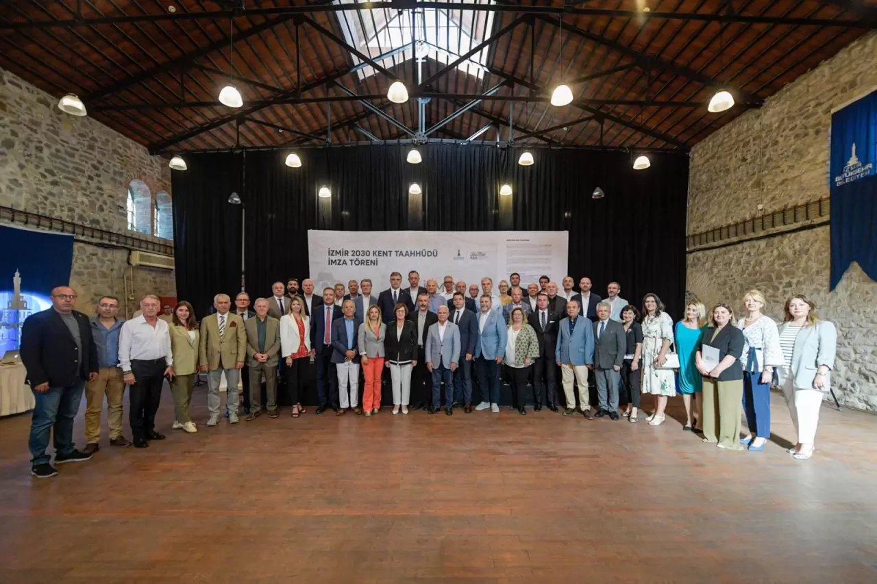 İzmir Büyükşehir Belediyesi iklim krizi ile mücadele çalışmalarını sürdürüyor. Avrupa Birliği’nin İklim Nötr ve Akıllı Şehirler Misyonuna dahil olan ve AB üyesi şehirler dışında “misyon etiketi” almaya hak kazanan ilk şehir olan İzmir, önemli bir birliktelik anlaşmasına imza attı. 2030 karbon nötr hedefinde önemli çalışmaları hayata geçiren ve hedefine güçlü adımlarla ilerleyen İzmir’de, İzmir Büyükşehir Belediye Başkanı Dr. Cemil Tugay liderliğinde İzmir Ekonomik Kalkınma Koordinasyon Kurulu (İEKKK) üyeleri Tarihi Havagazı Fabrikası’nda düzenlenen törenle İzmir 2030 Kent Taahhüdü’nü imzaladı. Kentin ekonomik, sosyal, çevresel ve mekânsal dönüşümünde öncü rol üstlenen kurumlar, ortak vizyon ve sorumluluk bilinciyle İzmir’in 2030 hedefinde beraber çalışacak.
