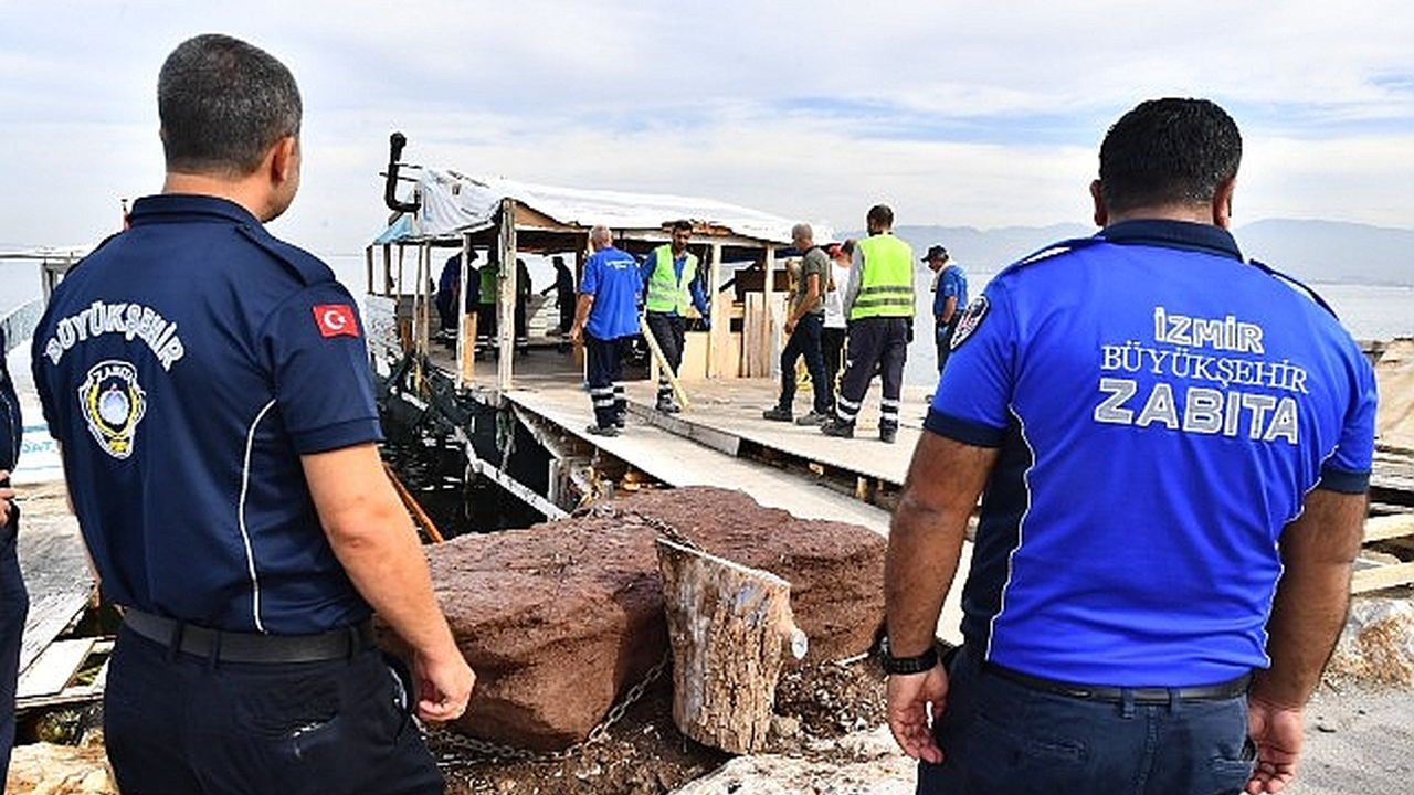 Bazıları deniz içine, bazıları ise yüzer vasfını yitiren tekneler üzerine konulan yapıların, Büyükşehir ekipleri tarafından kaldırılmasına yönelik çalışmalar başladı.    Sahilde görüntü kirliliğine geçit yok İzmir Büyükşehir Belediyesi Zabıta Dairesi Başkanlığı Çevre ve İmar Zabıtası Şube Müdürü Fuat Dönmez, çevre ve görüntü kirliliği oluşturan, aynı zamanda gıda satışı yapıldığı için hijyen sorunu da yaratan ahşap baraka, iskele, kulübe gibi izinsiz yapıları kaldırma konusunda kararlı olduklarını dile getirdi.  Dönmez; "Hemşehri İletişim Merkezi (HİM) ile CİMER'e de halkımızdan bu yönde şikayetler geliyordu.