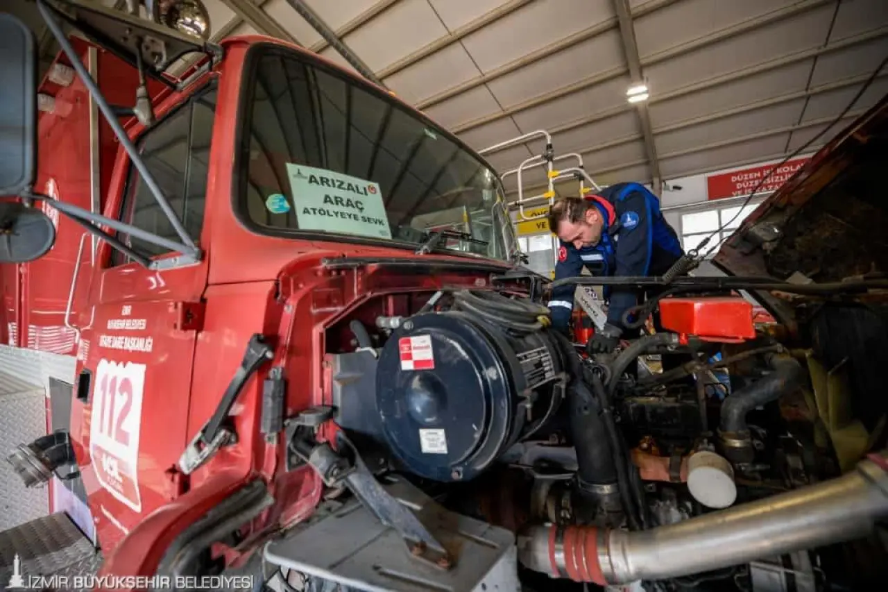 Atölye Formeni Mustafa Okkan, İzmir Büyükşehir Belediyesi İtfaiye Dairesi Başkanlığı envanterindeki tüm araç, gerecin bakım ve onarımını yaptıklarını söylüyor. İtfaiye araçlarının periyodik bakımlarını düzenli olarak gerçekleştirdiklerini anlatan Okkan, “Afetlerde sahaya gidip teknik destek veriyoruz. Biz de olağanüstü durumlarda itfaiyecilerle birlikte hareket ediyoruz” dedi. Bu atölyede yapılan her işlem, aslında bir hayatın daha güvence altına alınmasını sağlıyor. Okkan, “Araçların yazlık, kışlık tüm bakımlarını yapıyoruz. Arızaları gideriyoruz. İtfaiye araçlarının yüzde 91’inin bakımını kendi atölyemizde yapıyoruz. Dışarıya yaptırmak çok maliyetli olurdu. Biz belediyemizin öz kaynaklarıyla bu işi yapıyoruz” diyor.