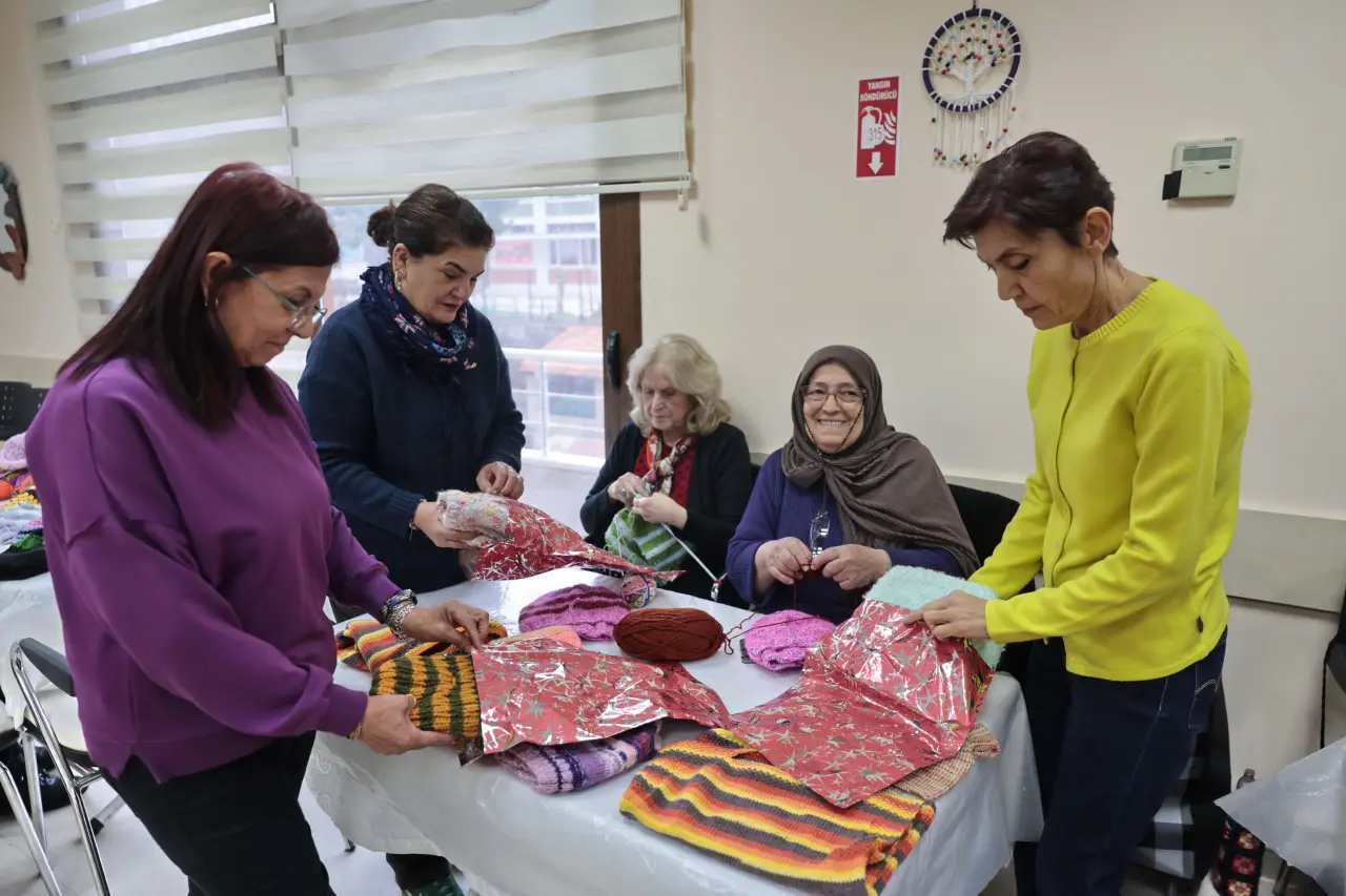 Konak Belediyesi Ziya Zişan Saadet Aytulun Kardeşler İleri Yaş Sağlıklı Yaşam Merkezi’nde Örgü Sınıfına devam eden kursiyerler, geleneği bozmadı; bu kış da örgüleriyle gönülleri ısıttı. Konak Halk Eğitim Merkezi işbirliğiyle düzenlenen kursa katılan 65 üye, elleriyle ördükleri bere, boyunluk, atkı, yelek, ceket, süveter, battaniye, bebek kıyafetleri, çocuk çantası, eldiven ve örgü oyuncakları Doğu ve Güneydoğu Anadolu Bölgeleri başta olmak üzere dağ köylerinde yaşayan çocuklara gönderdi. Sıcacık tutan, rengarenk el emeği örgü işlerinden Ağrı, Mardin, Van, Kars, Şanlıurfa, Aydın, Ankara, Ardahan, Diyarbakır, Siirt, Malatya, Tunceli ve Erzurum’da yaşayan çocuklar yararlandı. Yıl boyunca kursta üretime devam eden üyeler, ördükleri ürünleri her ay iki parti halinde göndermeye devam ediyor. Ayrıca hastanelerin onkoloji servislerinde tedavi gören çocuklara da rengarenk örgü ürünler ulaştırılıyor.