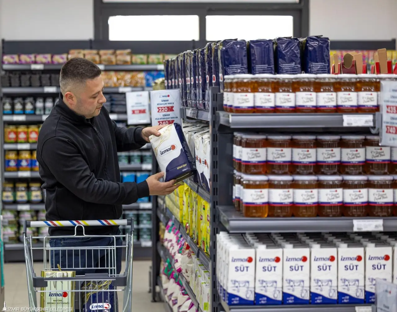 İzmir Büyükşehir Belediye Başkanı Dr. Cemil Tugay’ın İzmirliyi ekonomik ve güvenli alışverişle buluşturmak için kente kazandırdığı tanzim satış mağazası İZMAR, 22’nci şubesini Bayraklı Osmangazi’de hizmete açtı. İZTARIM tarafından Akhisarlı zeytin üreticilerinden alınarak hazırlanan ve aracısız olarak sofralara ulaştırılan İZMAR markalı kırma yeşil zeytin ise kilosu 171 liradan ilk kez satışa sunuldu.