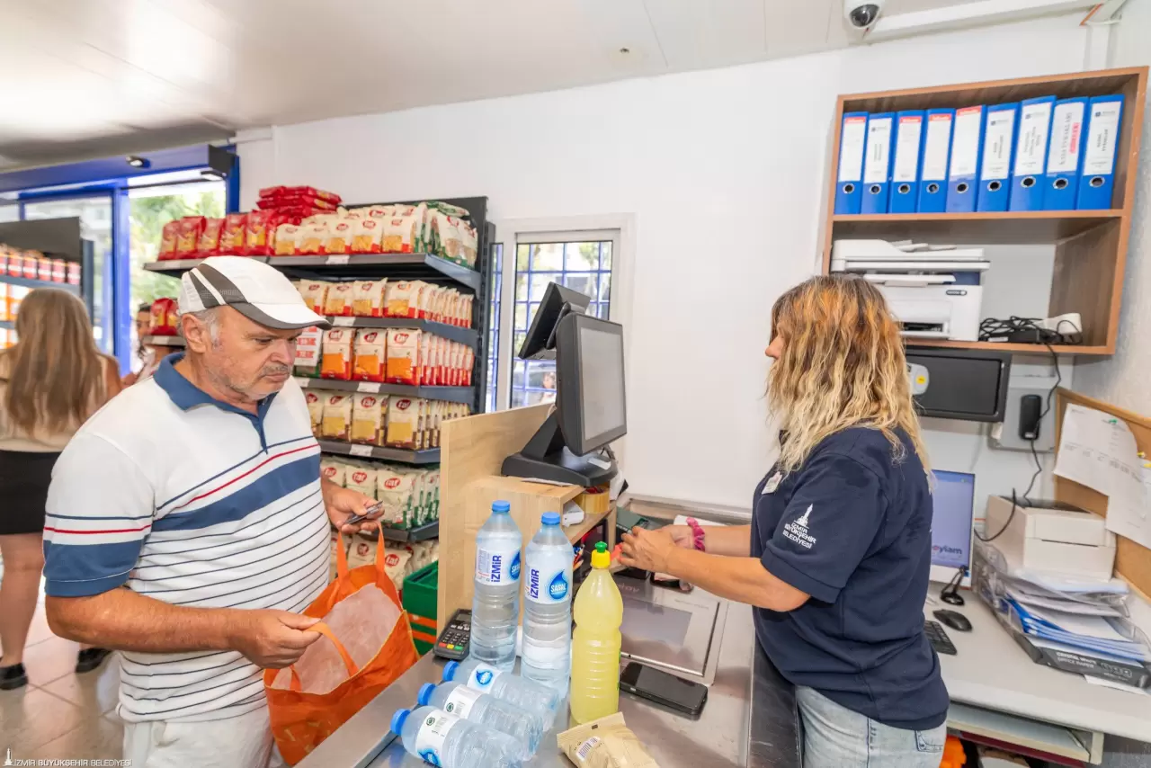 İzmir Büyükşehir Belediye Başkanı Dr. Cemil Tugay’ın enflasyona karşı İzmirlileri güvenli ve uygun fiyatlı alışverişle buluşturmak için kente kazandırdığı İZMAR mağazaları, 7’nci şubesini Bayraklı Özkanlar’da hizmete açtı. İzmir Büyükşehir Belediyesi’nin iştiraki İZTARIM AŞ tarafından Bayraklı Yunus Emre Parkı yanında hizmete açılan mağaza, hizmete başladığı andan itibaren bölge halkının yoğun ilgisiyle karşılaştı. İzmir Büyükşehir Belediyesi tarafından üretilen süt ve süt ürünleri, et ve et ürünleri, Halk Ekmek ile Şaşal Su, Badem Su ve İzmir Su ile kooperatiflerden alınan ürünlerin tek çatı altında uygun fiyatla satışa sunulduğu mağazalar, özellikle dar gelirlilere nefes oldu. İzmir Büyükşehir Belediyesi, ilk hedefte kent genelinde 20 şubeye ulaşmak için çalışmalarını tüm hızıyla sürdürüyor.