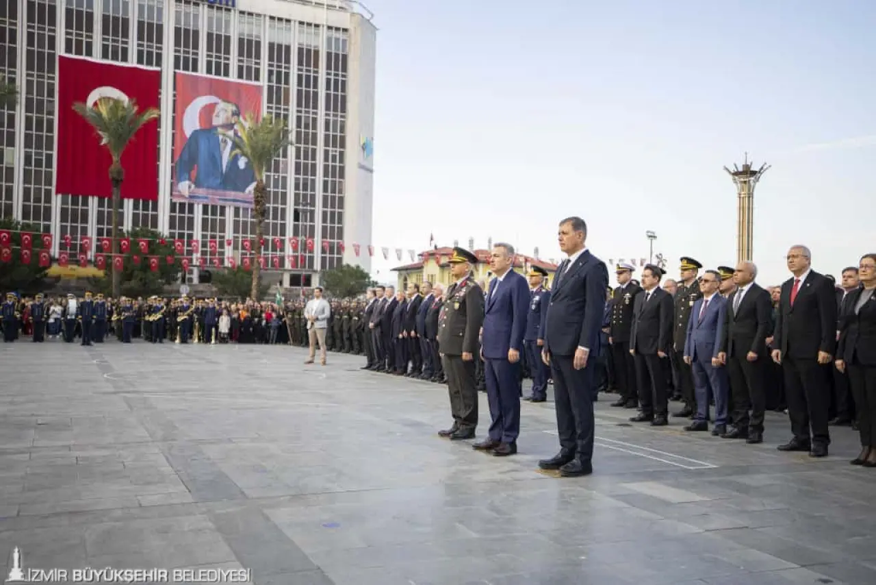 İzmir, ebediyete intikal edişinin 87'nci yıl dönümünde Türkiye Cumhuriyeti’nin kurucusu Ulu Önder Gazi Mustafa Kemal Atatürk'ü sevgi, saygı ve özlemle anıyor. Kent genelinde gün boyu sürecek anma etkinliklerinin ilki, Cumhuriyet Meydanı’ndaki saygı duruşu ve çelenk töreniyle başladı. Törende İzmir Büyükşehir Belediye Başkanı Dr. Cemil Tugay, İzmir Valisi Dr. Süleyman Elban, Ege Ordusu ve Garnizon Komutanı Orgeneral İrfan Özsert, meydandaki Atatürk Anıtı’na çelenk bıraktı. Törene ayrıca İzmir milletvekilleri, siyasi parti temsilcileri, ordu ve emniyet mensupları, kamu kurum ve kuruluşlarının temsilcileri, oda ve meslek kuruluşu temsilcileri ve çok sayıda İzmirli katıldı.