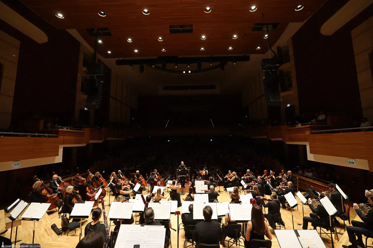 İzmir Büyükşehir Belediyesi Ahmed Adnan Saygun Sanat Merkezi'nde (AASSM) düzenlenen İzmir Devlet Senfoni Orkestrası (İZDSO) konserinde, uluslararası alanda büyük başarılara imza atmış şef Christoph-Mathias Mueller ile keman virtüözü Bomsori Kim bir araya geldi.