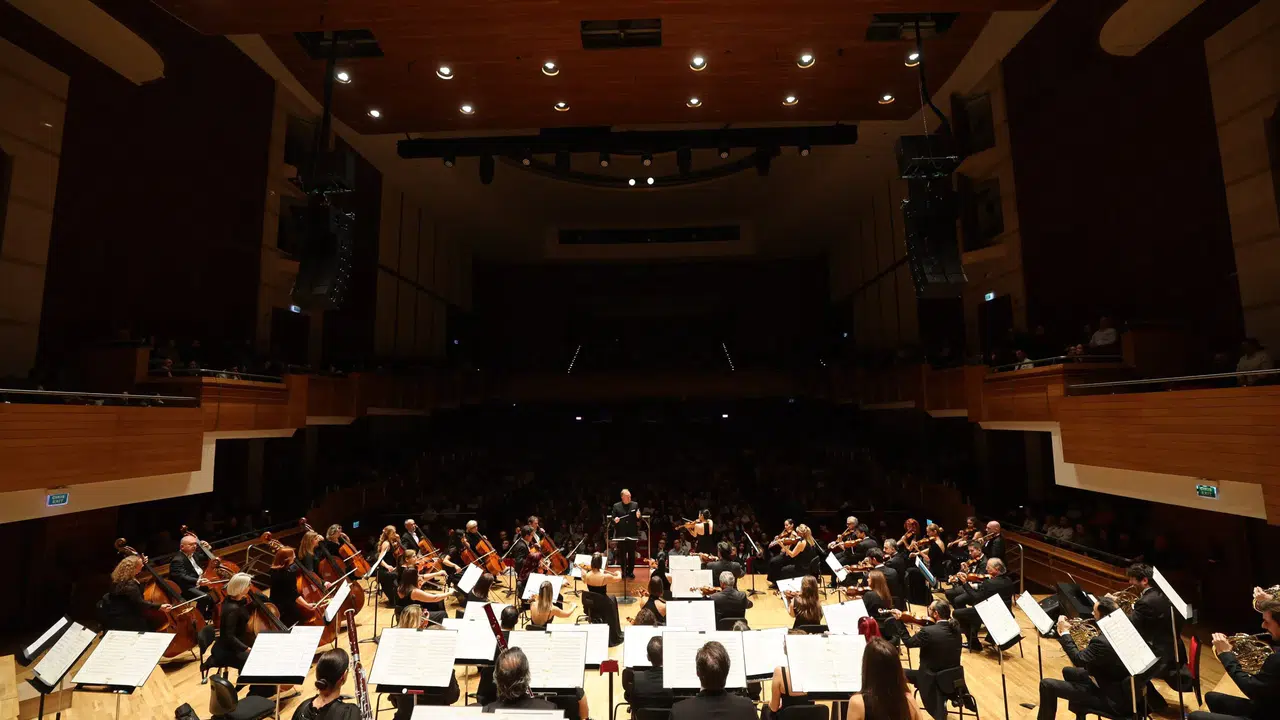 Küçük yaşta tanınmaya başlayan Güney Koreli Bomsori Kim, yeteneğiyle izleyenleri büyüledi. Yaklaşık bir saat süren iki bölümlük konserin birinci bölümünde Jean Sibelius’un 1903 yılında bestelediği Keman Konçertosu’nu çalan Kim, yoğun alkış aldı. 2020 yılında En İyi Senfonik Kayıt dalında BBC Ulusal Galler Orkestrasıyla birlikte yaptığı kayıtla Opus Klasik Ödülü’nün sahibi olan şef Christoph-Mathias Mueller, ikinci bölümde ise Edward Elgar’ın, İngiliz senfonik repertuarının en önemli eserlerinden biri kabul edilen Enigma Varyasyonları adlı eseri yönetti.