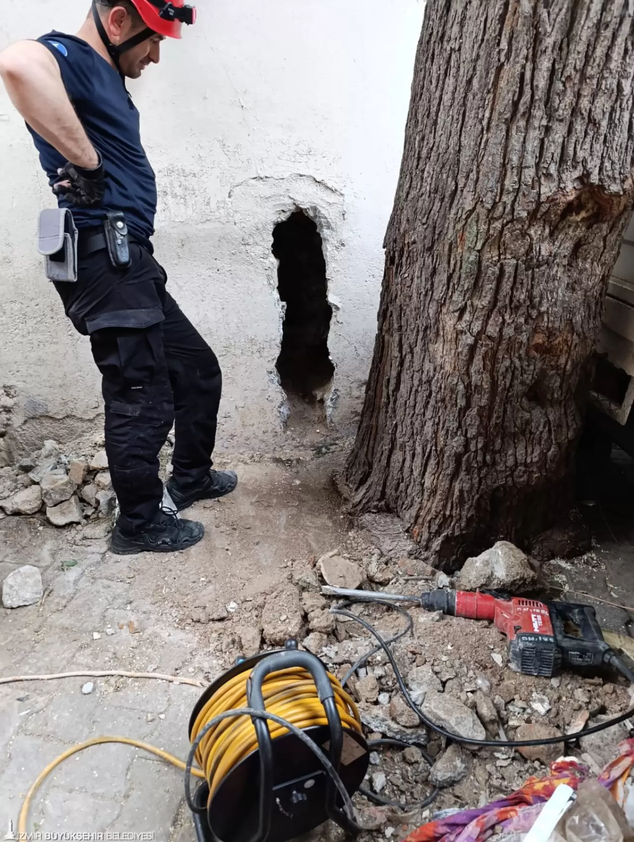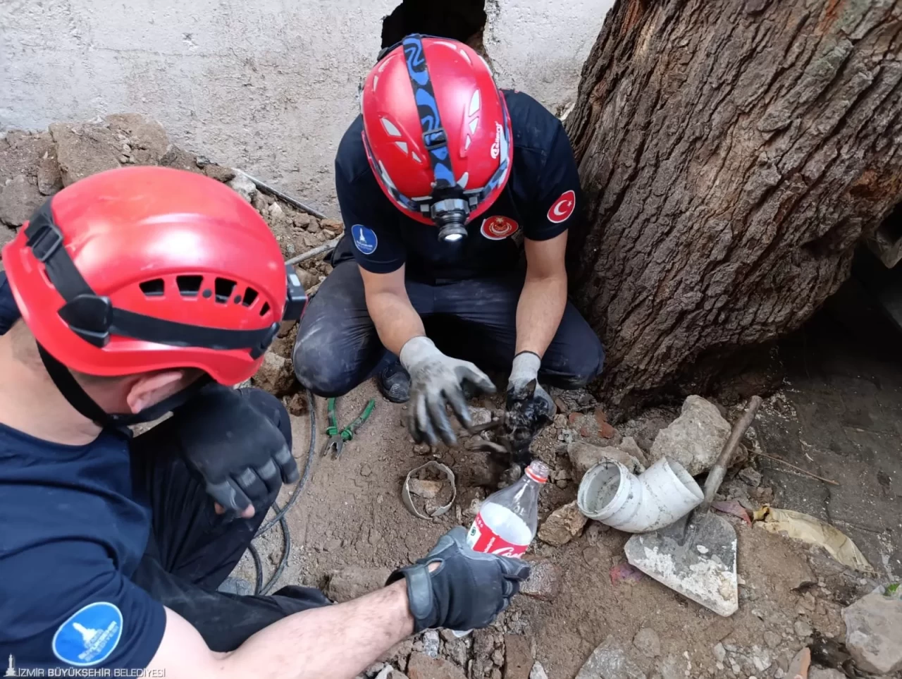 Yapılan taramada kedinin bina temelinin içerisinde yer alan havalandırma borularında olduğu belirlendi. İtfaiyenin kurtarma ekipleri, duvar içerisinde yaklaşık 80 santimetre alan açtı. Kedinin zarar görmesini önlemek amacıyla 4 kurtarma ekibi 4 saat süren titiz bir çalışmanın ardından, sevimli yavruyu bulunduğu yerden çıkarmayı başardı. Kedi, tedavi edilmek üzere İzmir Büyükşehir Belediyesi Veteriner İşleri Dairesi Başkanlığı’nın Kültürpark içerisinde yer alan Küçük Hayvan Polikliniği’ne teslim edildi.