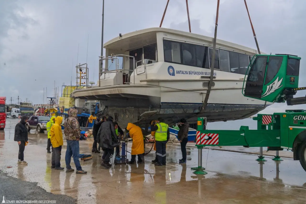 İzmir Büyükşehir Belediyesi, deniz ulaşımını güçlendirmek amacıyla Antalya Büyükşehir Belediyesi ile yapılan iş birliği kapsamında üç deniz dolmuşunu kente kazandırdı. Kiralanan, 42 yolcu kapasiteli deniz dolmuşları Güzelbahçe Balıkçı Barınağı’na indirildikten sonra İzmir Marina’ya çekildi. İzmir Marina’da gerekli bakım ve kontrolleri yapılacak olan deniz dolmuşları, körfez içi ulaşıma dâhil olmaları için yürütülen bürokratik işlemlerin tamamlanmasının ardından hizmet vermeye başlayacak. Deniz dolmuşlarıyla, yolcu yoğunluğunun düşük olması nedeniyle işletilemeyen hatların yeniden aktif hâle getirilmesi hedefleniyor. Ara saatlerde yolcu sayısının uygun olduğu hatlarda küçük kapasiteli ve hızlı deniz araçlarıyla hizmet sunulacak. Kapasite çeşitliliği sayesinde personel ve yakıt tasarrufu sağlanırken, çevreci küçük araçlarla karbon salınımının azaltılması amaçlanıyor. Deniz dolmuşlarının yanaşacağı platformların yapım çalışmaları ise sürüyor.