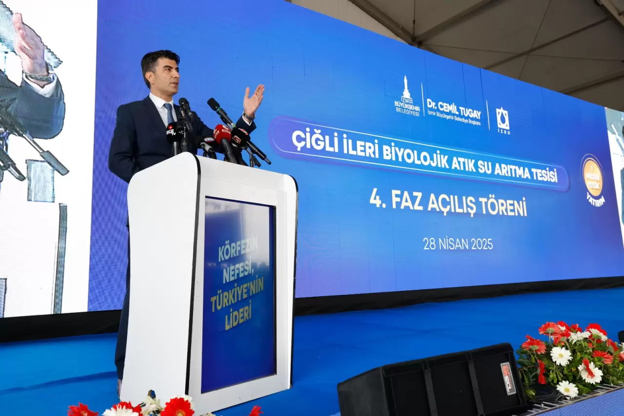 İzmir Büyükşehir Belediyesi şehrin en önemli çevre yatırımlarından birini tamamlayarak hizmete açtı. Çiğli İleri Biyolojik Atıksu Arıtma Tesisi’nin kapasitesini yüzde 36 artırarak Körfez’in temizleme sürecini hızlandıracak 4. fazın açılışı binlerce İzmirlinin katıldığı görkemli bir törenle yapıldı. 1 milyar liralık yatırımla Türkiye’nin en büyük atık su arıtma tesisi unvanına tekrar kavuşan tesisin açılışında konuşan İzmir Büyükşehir Belediye Başkanı Dr. Cemil Tugay, “Körfez temizlenene kadar durmayacağız. Bizler konuşan değil yapan tarafta olacağız. Konuşan, şovlar yapan başkaları olacak, iş yapan biz olacağız. Bize çok çalışmak yakışır” dedi.
