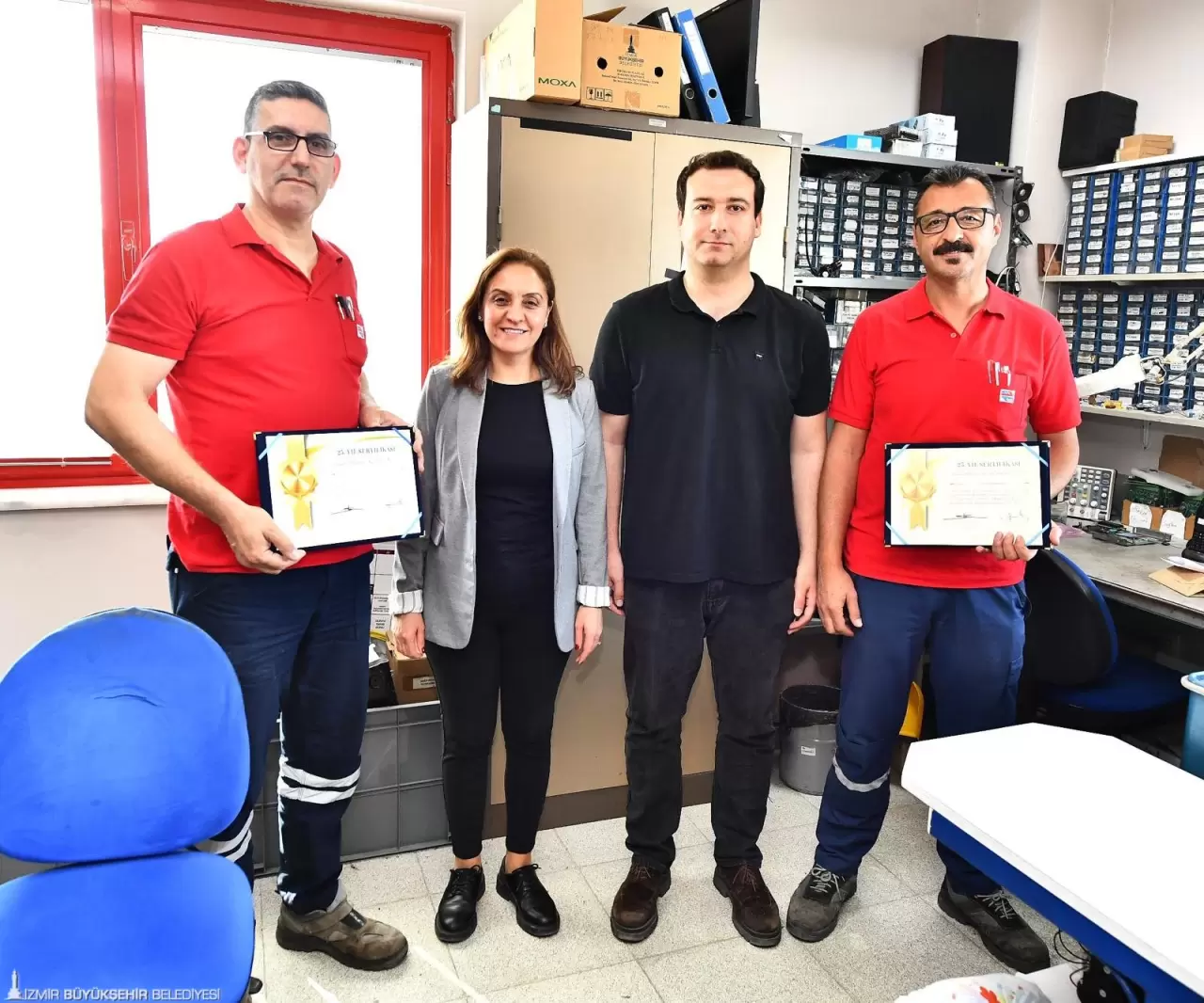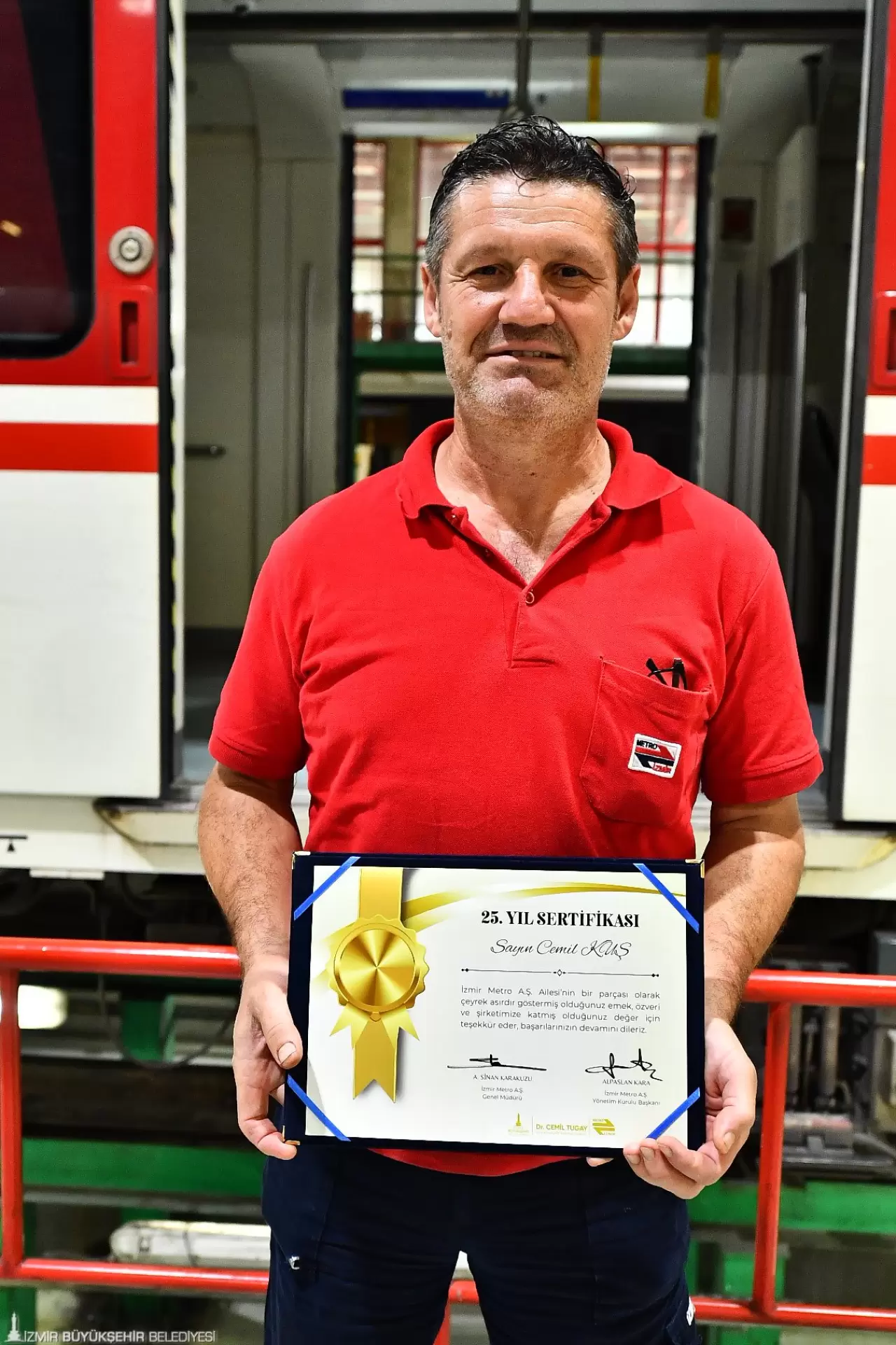 Konak Tramvayı İşletme Müdürü Bahadır Yiğit, “25 yıl çok uzun gibi gözükse de göz açıp kapayıncaya kadar geçti. Güzel yıllarımız, güzel işlerimiz oldu. 2000 yılında henüz metro işletmeye açılmadan göreve başladım. İlk görevim kontrolörlüktü. 25 yıl boyunca değişik kademelerde görev aldıktan sonra şu anki görevime başladım. Nice 25 yıllara” dedi.
