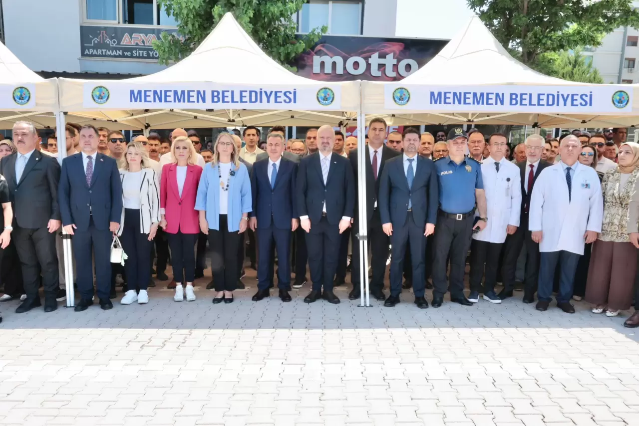 Menemen Müftüsü Mehmet Seven'in duaları eşliğinde tesisin açılış kurdelesi kesildi. Resmi açılış sonrası protokol üyeleri ve vatandaşlar Polikliniği gezdi.