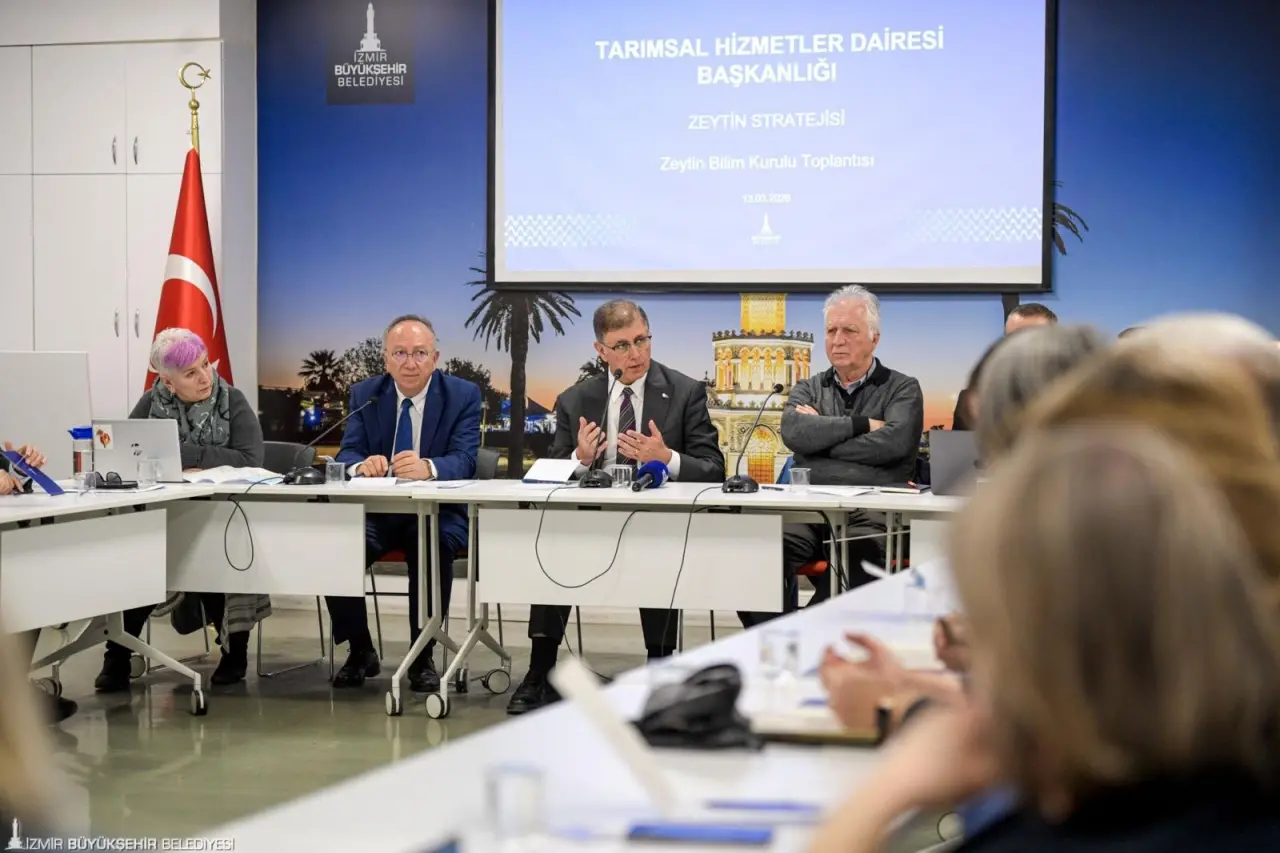 İzmir Büyükşehir Belediyesi, kentin binlerce yıllık mirası zeytinin ve zeytinyağının doğru yöntemlerle üretilmesi, kalitesinin artırılması ve doğru pazarlama stratejileriyle markalaşması için akademisyenlerden üreticilere, kamudan sivil topluma tüm paydaşların yer aldığı Zeytin Bilim Kurulu oluşturdu. Tarımsal Hizmetler Dairesi Başkanlığı koordinasyonundaki kurul ilk toplantısını “Zeytin Stratejileri” başlığıyla düzenleyerek yol haritasını oluşturdu. Çetin Emeç Toplantı Salonu’ndaki toplantıya İzmir Büyükşehir Belediye Başkanı Dr. Cemil Tugay, İzmir Planlama Ajansı (İZPA) Başkanı Prof. Dr. Koray Velibeyoğlu, Prof. Dr. Yusuf Kurucu, İzmir Büyükşehir Belediyesi Tarımsal Hizmetler Dairesi Başkanı Bülent Üngür, Kırsal Hizmetler Dairesi Başkanı Nehir Yüksel, zeytincilik alanında çalışan akademisyenler, zeytin üreticileri, kooperatifler, ihracatçılar, zeytinyağı üreticileri ve sivil toplum kuruluşu temsilcileri katıldı.
