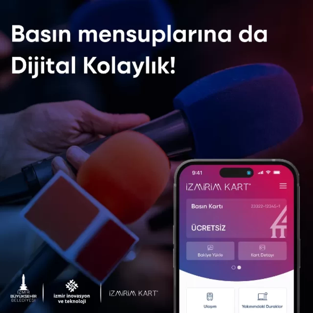 İzmir Büyükşehir Belediyesi ve İzmir İnovasyon ve Teknoloji A.Ş. tarafından gerçekleştirilen yeni sistemde basın mensupları artık fiziksel karta ihtiyaç duymadan toplu ulaşımda QR kod ile hızlı ve kolay geçiş yapabilecek.