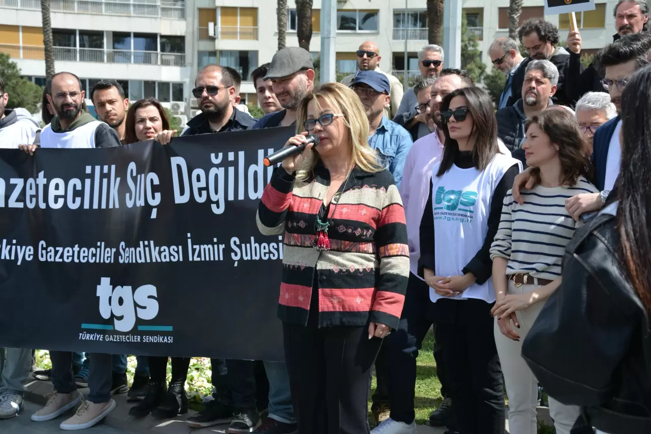 İGC Başkanı Dilek Gappi, İGC Yönetim Kurulu Üyeleri, İGC Önceki Dönem Başkanı Misket Dikmen, TGS İzmir Şube Başkanı Nil Kahramanoğlu, BAMAD Başkanı Ümit Kartal, ÇGD Temsilcisi Adem Sarıkaya, yerel basın temsilcileri, sivil toplum kuruluşlarının temsilcileri ve vatandaşların da katıldığı eylemde gazeteciler ‘Kurtuluş yok tek başına ya hep beraber ya hiçbirimiz’, ‘Özgür basın susturulamaz’ sloganları attı.