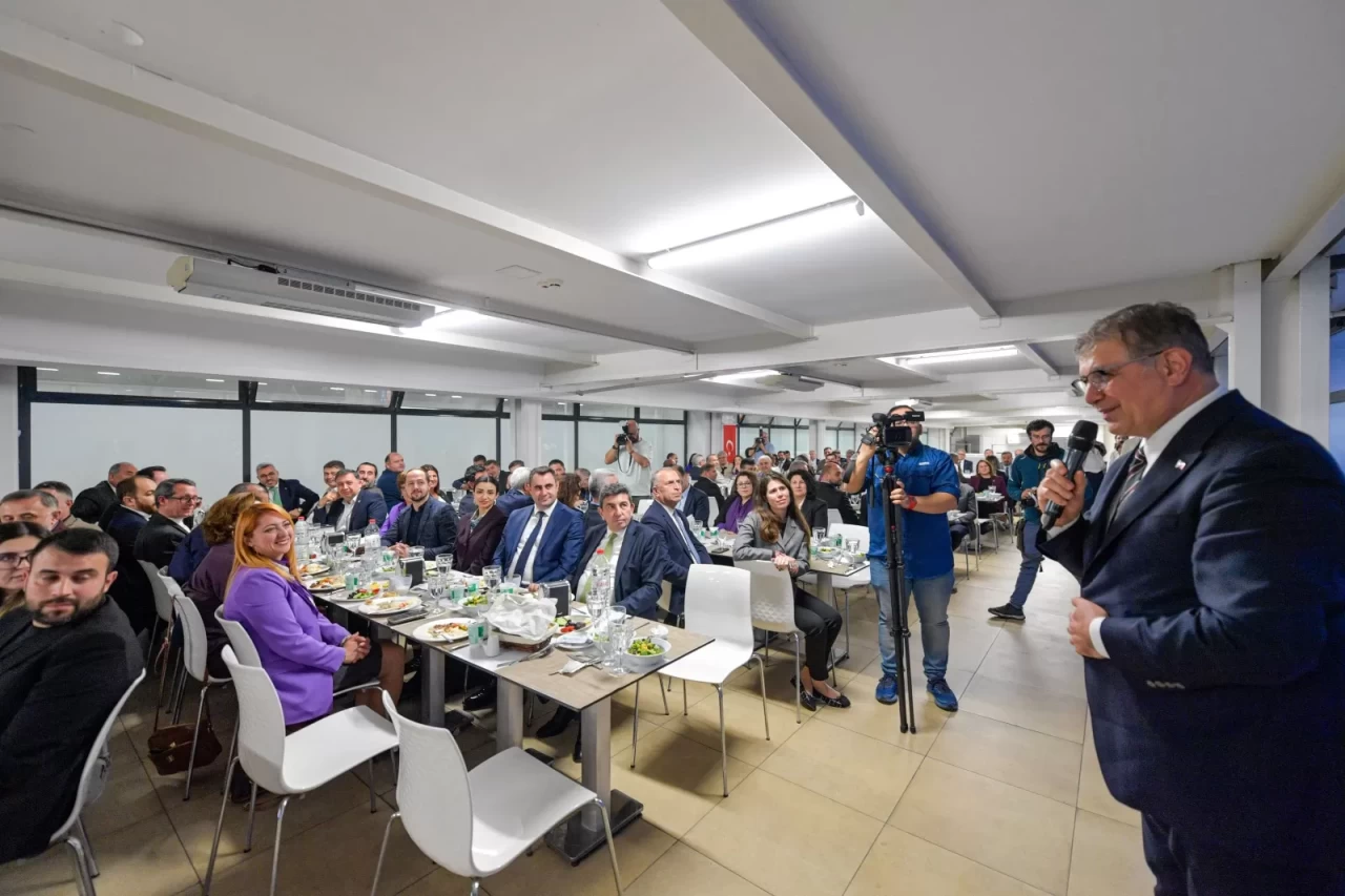 İftar yemeğinde konuşan Başkan Tugay, “Ramazanınız kutlu olsun, mübarek olsun. İnşallah hayırlara vesile olsun. Hepimizin şehrimizin iyiliği üzerine, insanlarımızın iyiliği üzerine duaları olduğuna eminim. Hayır dualarınızın kabul olmasını diliyorum. Güzel İzmir’imize iyilikler gelmesini yürekten diliyoruz. Beraber çalışıyoruz. Zaman zaman birbirimizi eleştiriyoruz. Zaman zaman o anki duygularla birbirimize bir şeyler söylüyoruz. İzmir için iyi niyetle çalıştığımıza inandığımız arkadaşlarımızın bana yönelik sözleri itibariyle kendi hakkımı böyle bir zamanda helal ediyorum. Bundan sonraki zamanda da daha pozitif bir iletişimle, ortak çalışma kültürünü daha da geliştirerek şehrimize hizmet etmeyi diliyorum. Allah hepimize yardımcı olsun. Şehrimiz için daha güzel şeyler yapabilelim” diye konuştu.