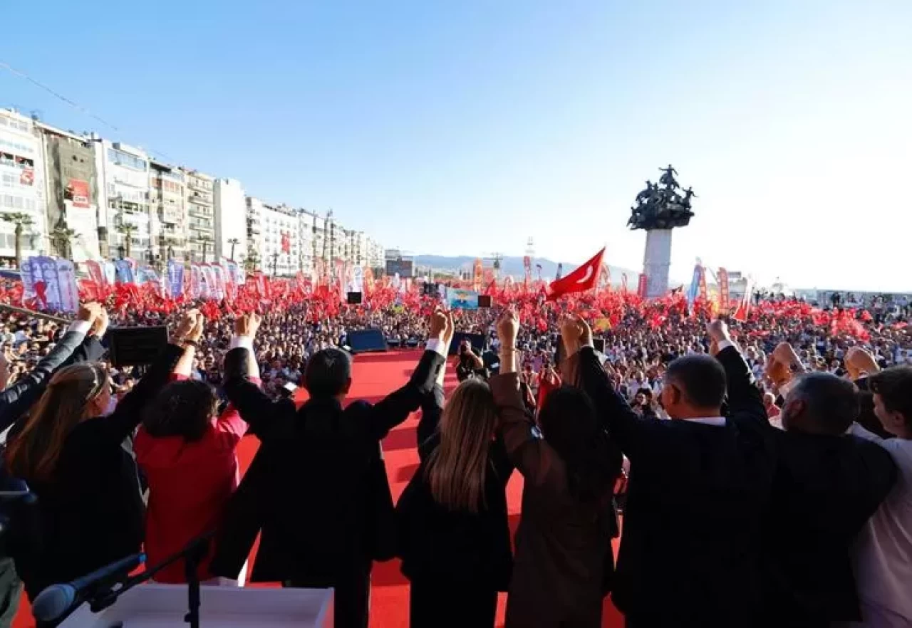 CHP tarafından 19 Mayıs Atatürk’ü Anma Gençlik ve Spor Bayramı’nda organize edilen “Millet İradesine Sahip Çıkıyor İzmir Mitingi”, Gündoğdu Meydanı’nda büyük bir coşkuya sahne oldu. CHP Genel Başkanı Özgür Özel ve eşi Didem Özel, eski CHP Genel Başkanı Hikmet Çetin, İzmir Büyükşehir Belediye Başkanı Dr. Cemil Tugay ve eşi Öznur Tugay, Ekrem İmamoğlu’nun eşi Dilek İmamoğlu, CHP İzmir İl Başkanı Şenol Aslanoğlu ve eşi Duygu Aslanoğlu, CHP Parti Meclisi (PM) ve Yüksek Disiplin Kurulu (YDK) Üyeleri, milletvekilleri, belediye başkanları, parti mensuplarının yer aldığı tarihi mitingde yurttaşlara seslenen Başkan Tugay, “Türkiye elbette büyük ve güçlü bir ülke ama yanlış yönetilince yoksulların ve işsizlerin ülkesi olduk. Cumhuriyet kurulduğu yıllarda idealist, vatansever yöneticileri vardı. Halk da onların etrafında kenetlenmişti. İşte bu şekilde Türkiye hızla büyümüş ve yükselmişti ama şimdi; hata üstüne hata yapıyor, acısını çiftçisiyle, emeklisiyle, öğrencisiyle, işçisiyle, memuruyla ve en önemlisi iş bulamayan gençleriyle tüm halkımız çekiyor. Gençlerimiz başka ülkelerde kendisine gelecek arıyor. Onlara ‘Giderlerse gitsin’ diyor birileri. İçimiz acıyor, çünkü gidenler bizim geleceğimiz. Bu yanlışlara azim ve kararlılıkla hep beraber ‘dur’ diyeceğiz değerli kardeşlerim ve büyüklerim. Türkiye kaybettiği her şeyi tekrar geri kazanacak. Çalışarak başaracağız. Kendimize, halkımıza, değerlerimize inanarak bunu başaracağız” diye konuştu.