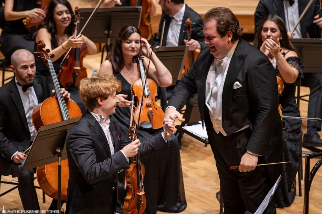 İzmir Büyükşehir Belediye Başkanı Dr. Cemil Tugay, Ahmed Adnan Saygun Sanat Merkezi’nde (AASSM) gerçekleşen İzmir Oda Orkestrası konserine katıldı. İzmirli sanatseverlere müzik ziyafeti sunan programın ilk yarısında HR Frankfurt Radyo Senfoni Orkestrası’nın Başkemancısı Bükreşli sanatçı Florin Iliescu, repertuvarının en virtüözistik eserlerinden H. Wieniawski Polonaise de Concert, op.4 (Konser Polonezi) ve E. Ysaye Caprice d’après L’Étude en Forme de Valse (Vals Biçimindeki Etüt Üzerine Kapris) yapıtlarını seslendirdi. Konserin ikinci yarısında ise Alman şef Jesko Sirvend yönetiminde F. Mendelssohn’un Akdeniz’in renkli ve coşkulu atmosferini yansıtan 4. Senfonisi yorumlandı. Bir buçuk saat süren konser programı ilk yarı teknik virtüözitenin ön planda olduğu solo performanslardan oluştu. İkinci yarı Mendelssohn’un enerjik ve geniş kitlelerce bilinen “İtalyan” senfonisiyle tamamlandı.