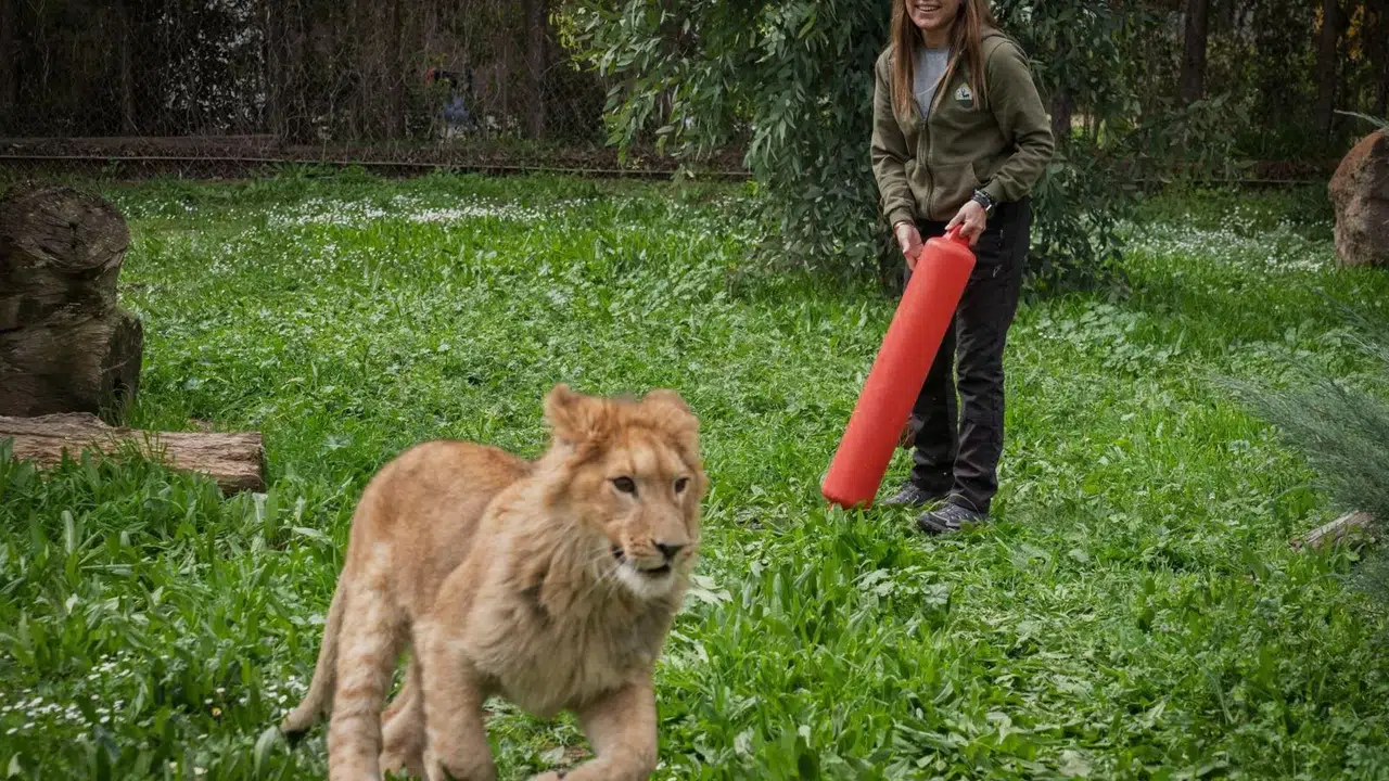 İzmir Büyükşehir Belediyesi Genel Sekreter Yardımcısı Prof. Dr. Pınar Okyay, yavru aslanın çiftlikte kapalı bir ortamda tutulmuş olduğunu belirterek, “Yavru aslanı İzmir Doğal Yaşam Parkı’nda tedavi altına aldık. Veteriner hekimlerimiz aslanın uygun olmayan beslenme şekli nedeniyle raşitizm hastalığına yakalandığını, kemiklerinde, ayaklarında sorun olduğunu belirledi. Arkadaşlarımız onu sevgi ile kucakladı. Yaklaşık bir aydır bizimle birlikte. İlk günler veteriner hekimlerin gözetiminde dışarı çıkıyordu. Yapılan bakım ve tedavilerin ardından artık kendisi dışarı çıkıp yaşam alanında zaman geçiriyor” dedi.