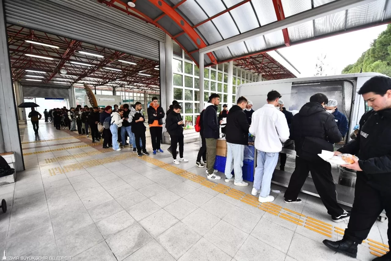 İzmir Büyükşehir Belediyesi’nin üniversite öğrencilerine sunduğu ücretsiz sıcak yemek uygulaması devam ediyor. Büyükşehir Belediyesi bünyesindeki aşevinde üretilen sağlıklı ve lezzetli yemekler, Ege Üniversitesi içi metro durağı, Katip Çelebi Üniversitesi içi kız yurdu yakını, Bakırçay Üniversitesi içi, Demokrasi Üniversitesi önü, İzmir Yüksek Teknoloji Enstitüsü (İ.Y.T.E.) içi kütüphane önü, Dokuz Eylül Üniversitesi Tarık Akan Gençlik Merkezi önünde bulunan 6 noktadan üniversite öğrencilerine ulaştırılıyor.