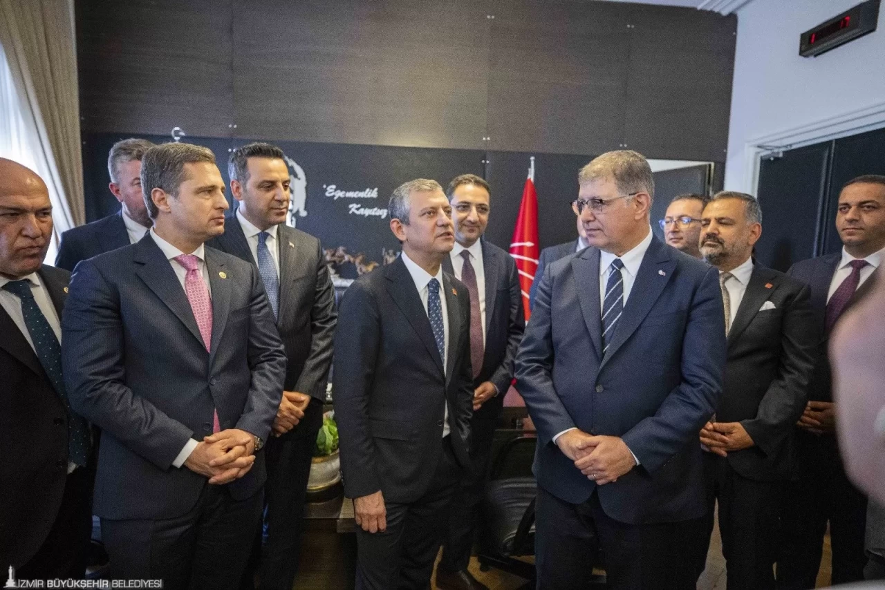İzmir Büyükşehir Belediye Başkanı Dr. Cemil Tugay, Cumhuriyet Halk Partili ilçe belediye başkanları, il ve ilçe yöneticileriyle birlikte Ankara’ya giderek CHP’nin TBMM Grup toplantısına katıldı. Genel Başkan Özgür Özel’e yönelik saldırıya tepkilerini göstermek ve destek mesajı vermek üzere Ankara’ya giden Başkan Tugay ve İzmir heyeti grup toplantısının ardından Özel’le makamında görüştü.