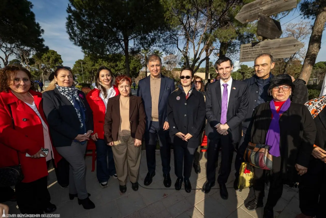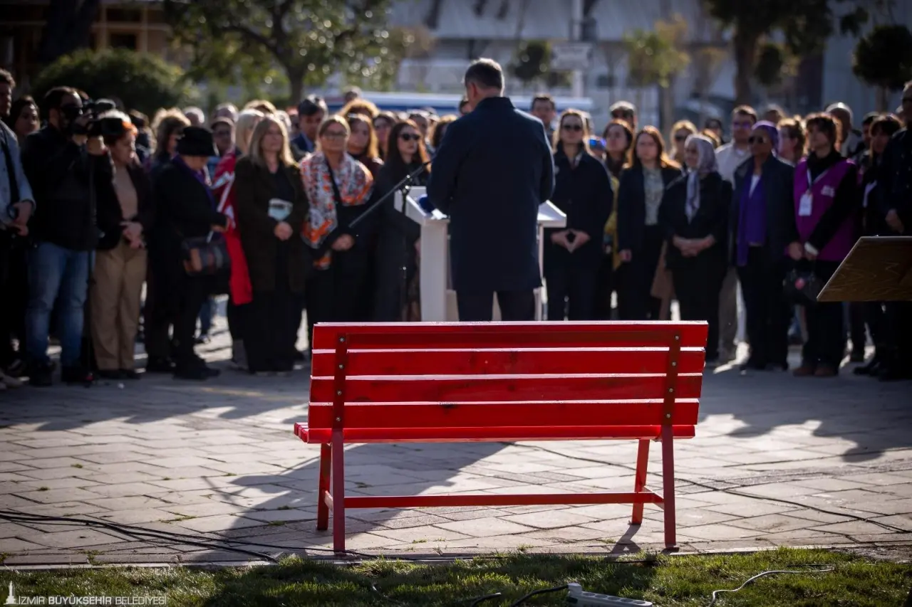 8 Mart Dünya Kadınlar Günü kapsamında İzmir Büyükşehir Belediyesi ve İzmir İtalya Konsolosluğu iş birliğiyle Kültürpark’ta kırmızı bank farkındalık çalışması gerçekleştirildi. İtalya’da kadınlara yönelik şiddet ve cinayetlere karşı farkındalık yaratmak amacıyla başlatılan bu sembolik uygulamada, kırmızıya boyanan banklar şiddet nedeniyle yaşamını yitiren kadınların yokluğunu hatırlatıyor ve kamusal alanlarda dayanışma mesajı veriyor. Zamanla uluslararası bir farkındalık kampanyasına dönüşen uygulamada İzmir Büyükşehir Belediye Başkanı Dr. Cemil Tugay ve eşi Öznur Tugay, İzmir İtalya Konsolosu Daniele Bianchi ile birlikte iki bankı kırmızıya boyadı ve kadına şiddete karşı mesaj verdi. Programa, İzmir Büyükşehir Belediyesi Başkan Vekili Dr. Zafer Levent Yıldır, İzmir Büyükşehir Belediyesi Genel Sekreter Yardımcısı Prof. Dr. Pınar Okyay ve yurttaşlar katıldı.