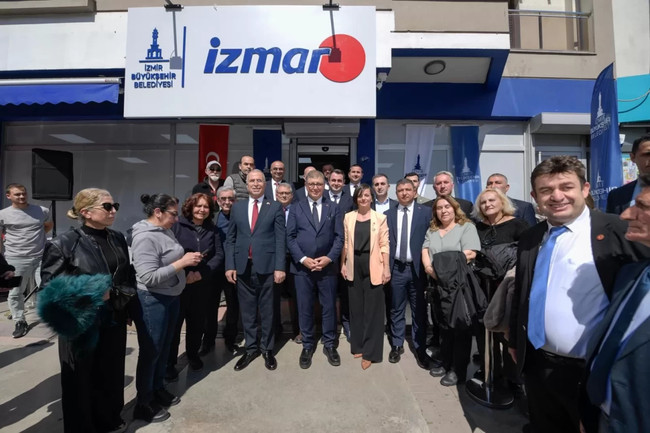 İzmir Büyükşehir Belediyesi, 43 yıl kente hizmet veren tanzim satış mağazalarını İZMAR adıyla yeniden İzmirlilerin hizmetine sundu. Karabağlar, Menemen ve Gaziemir’de üç şubeyle hizmete açılacak mağazaların ilki olan Bozyaka şubesi, Başkan Dr. Cemil Tugay’ın ilk alışverişiyle hizmete başladı. Güvenilir gıda ve temel tüketim ürünlerinin uygun fiyatla satışa sunulduğu İZMAR’ların piyasa fiyatının yüzde 20 altında satış yapacağını açıklayan Başkan Tugay, vatandaşın yaptığı 5 bin liralık bir market alışverişinin bin lirasının cebinde kalacağını söyledi.